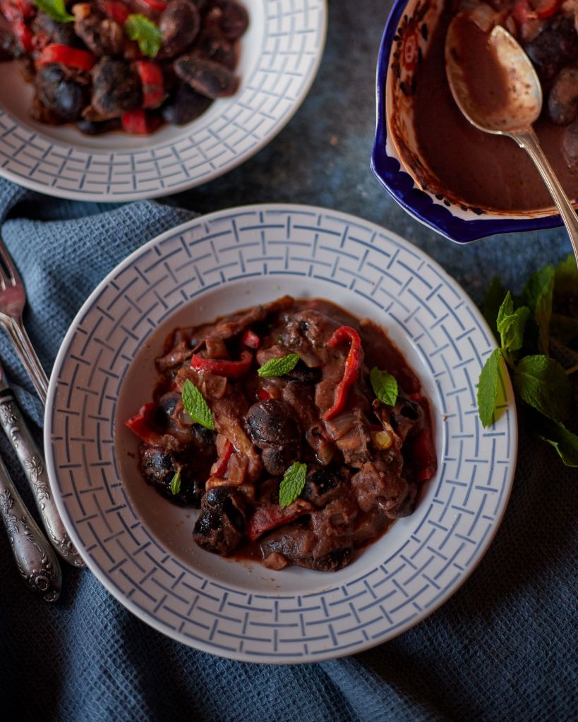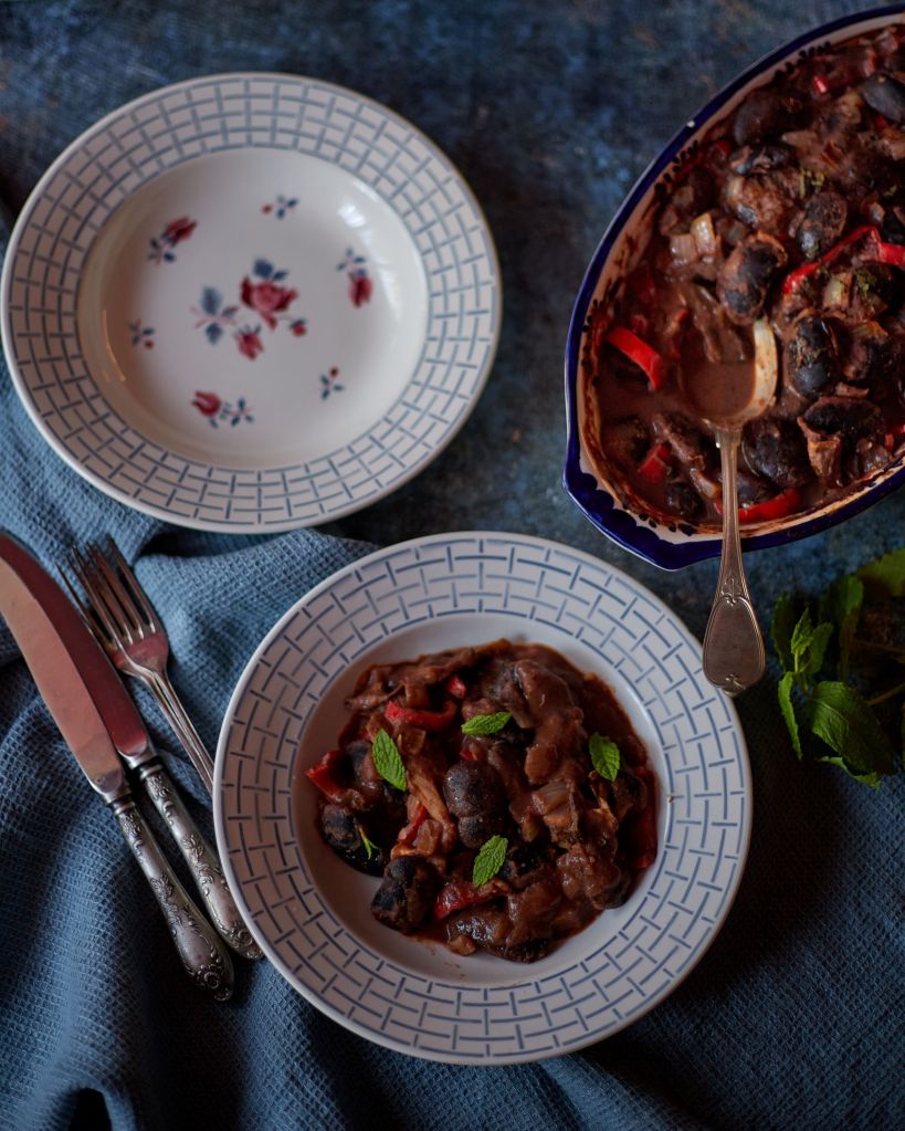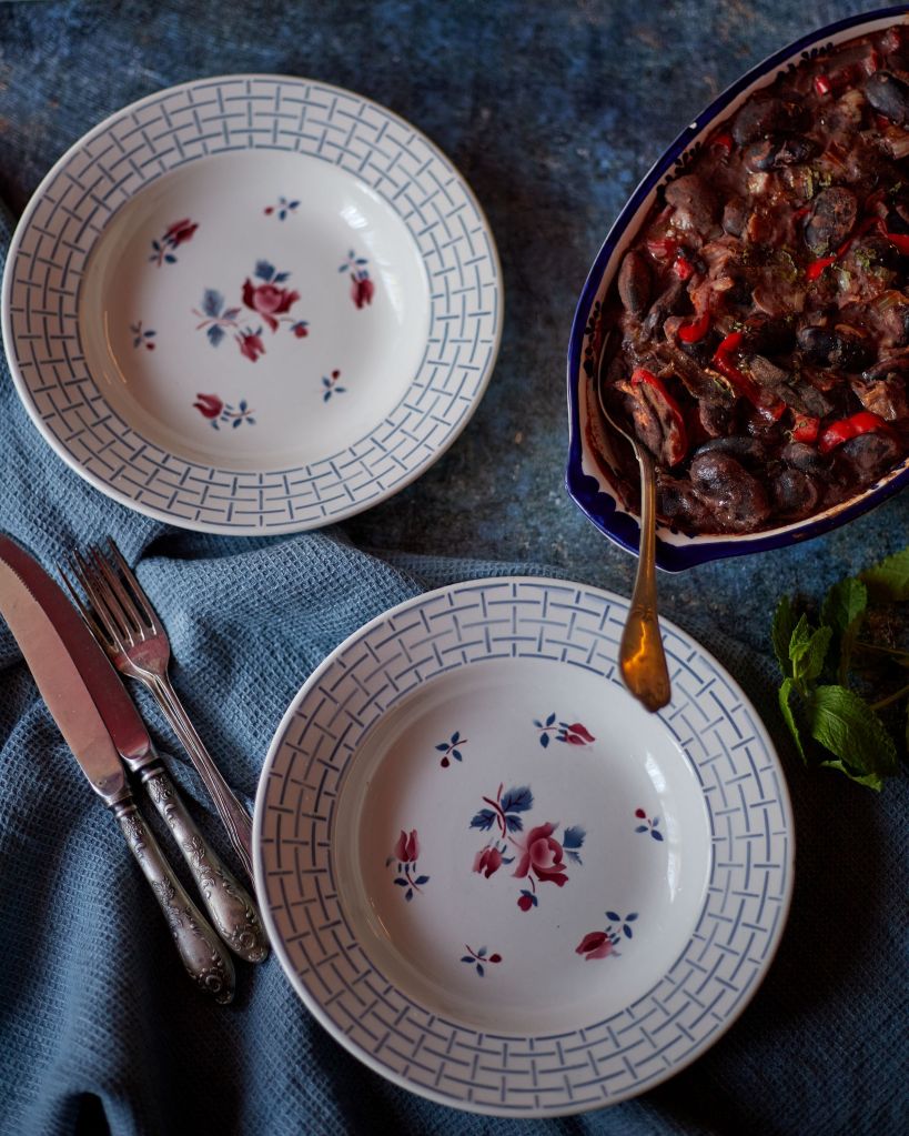 Мислех за студена салата, но пък сезонът е точно за топли и сгряващи ястия, затова в крайна сметка се спрях на боб на фурна с манатарки – също класика. Не съм търсила рецепти, направих го според вкуса си. Основната разлика, може би, е че не сгъстих с брашно, а пасирах част от боба с част от водата, в която е врял. Освен манатарките, добавих лук, чесън и червени чушки и гарнирах с пресен джоджен. Получи се прекрасно, изненадващо вкусно за мен. Така че, дори да не обичате боб, пробвайте.