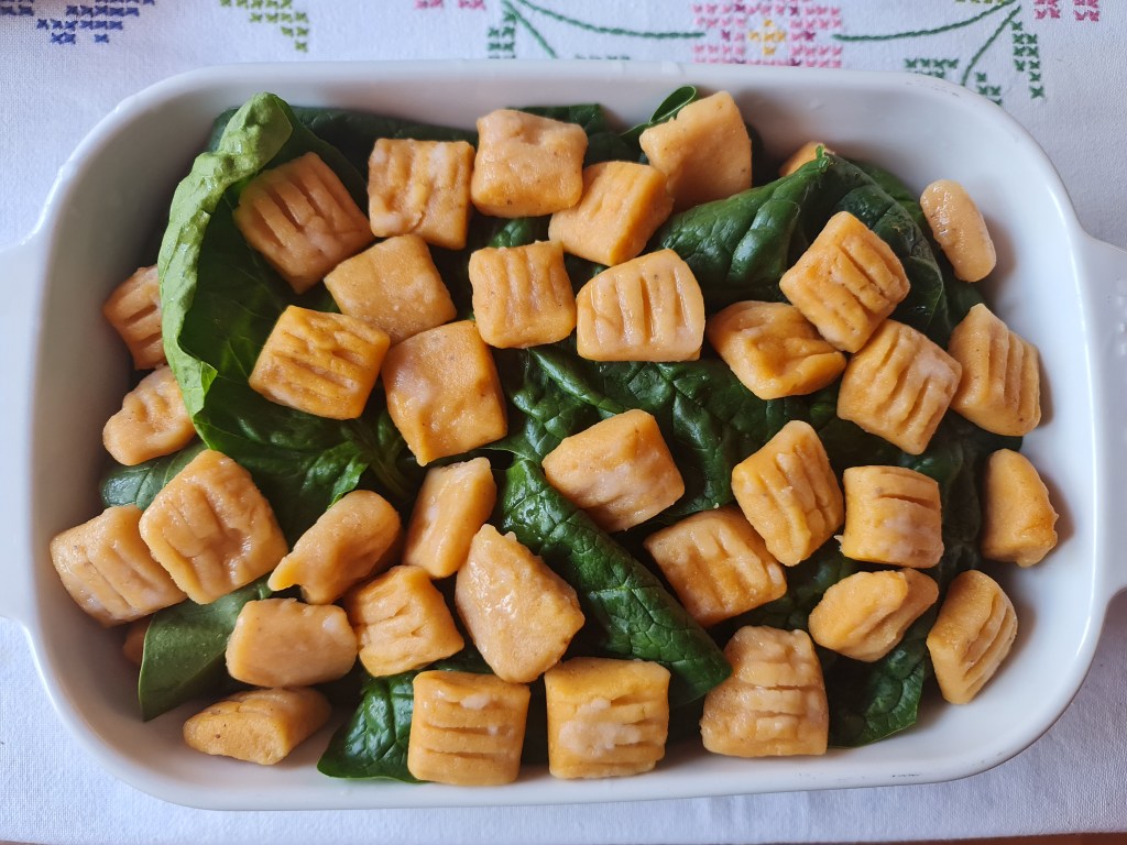 Миналата година направих ньоки от тиква. Много хубави станаха, но бяха за две готвения и прибрах остатъка във фризера. И го забравих. Тази седмица, докато преглеждах съдържанието, намерих пакета и реших, че времето им е дошло.