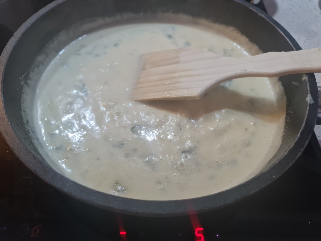 Загрейте голям съд с вода, докато кипне и внимателно добавете ньоките (може и на части). Изчакайте да излязат на повърхността и извадете с решетеста лъжица – отнема около 4 минути. Оставете на страна, похлупени и запазете около 100 – 120 мл от водата, в която са вряли.