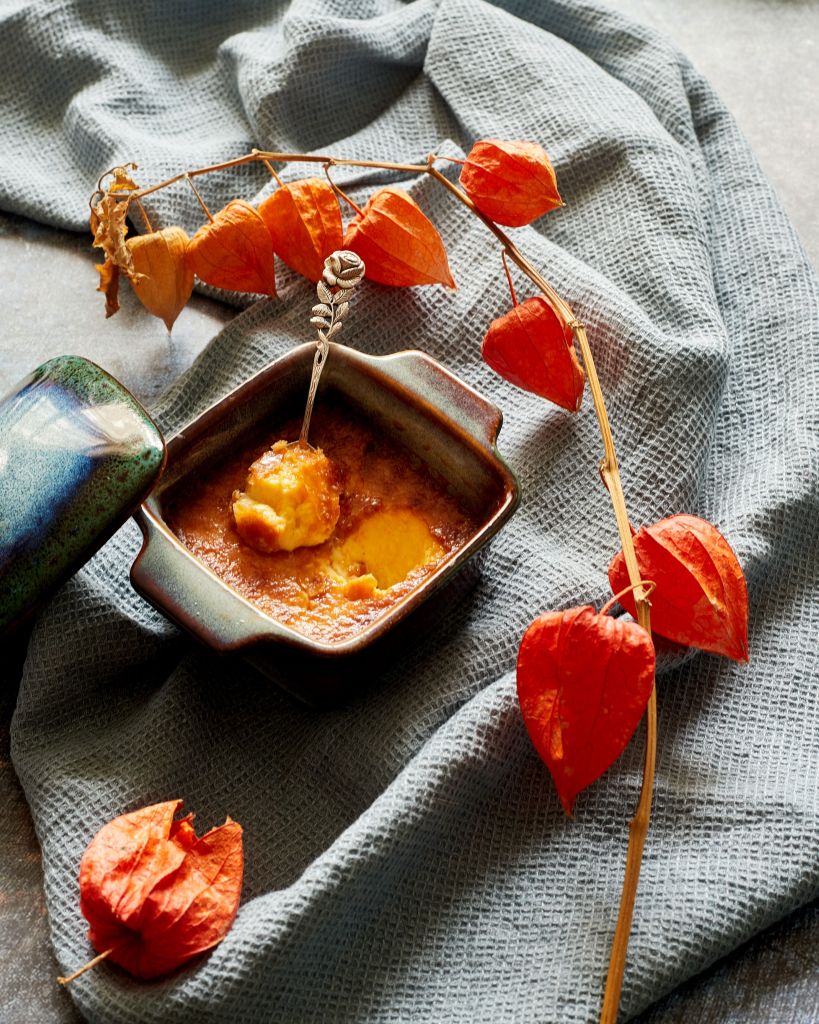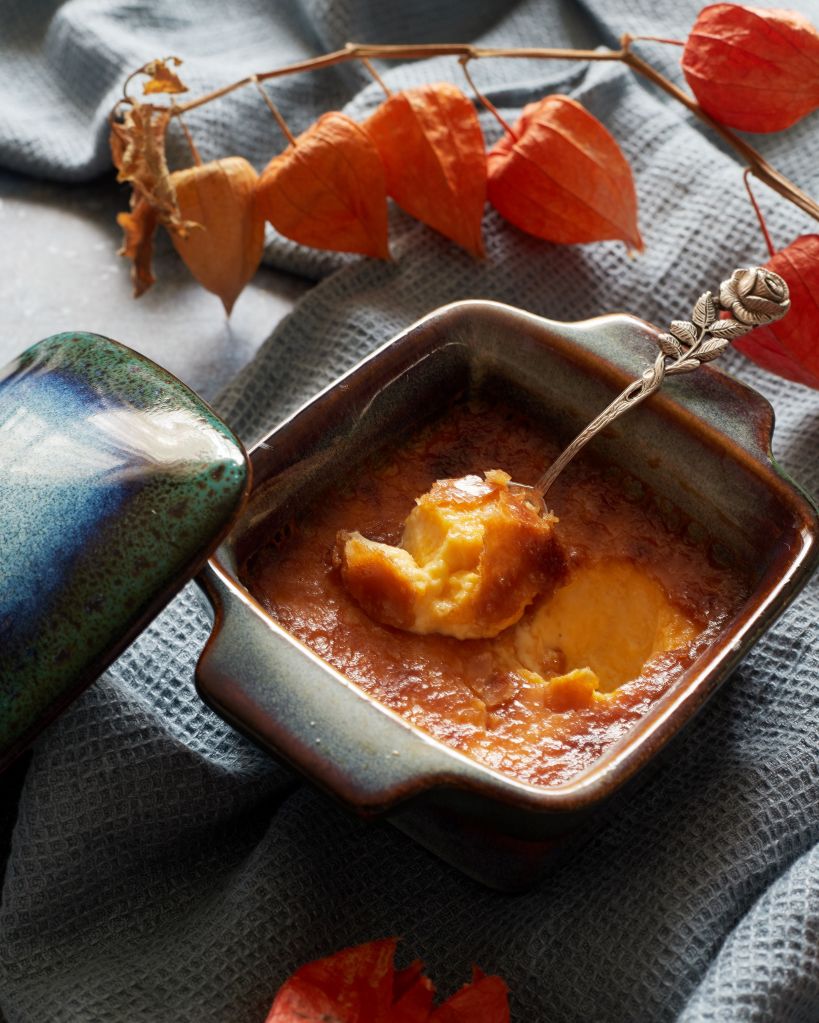 В рецептата няма нищо сложно, стига да се спазват инструкциите за темпериране на яйцата. За да е различно и интересно, добавих пюре от печена тиква и индийско орехче, което направи десерта сезонен.