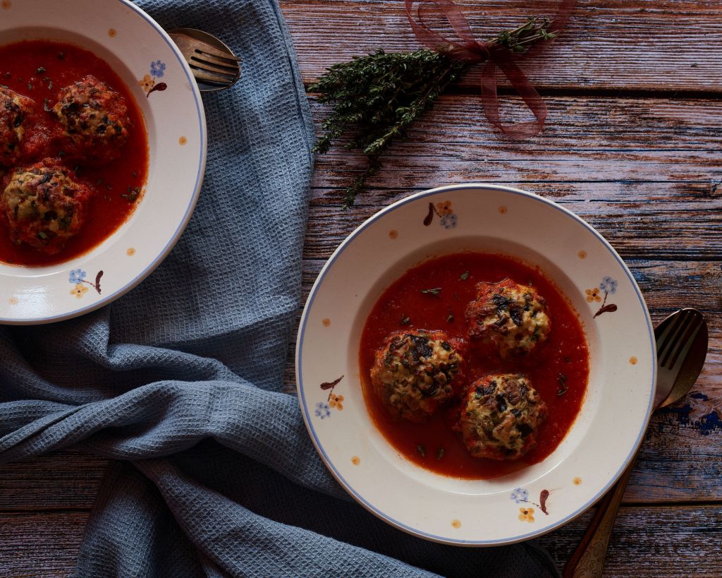 Гответе 15 – 16 минути на 180 градуса. Преди да извадите кюфтетата от Air Fryer, загрейте соса. Сервирайте с прясна мащерка.