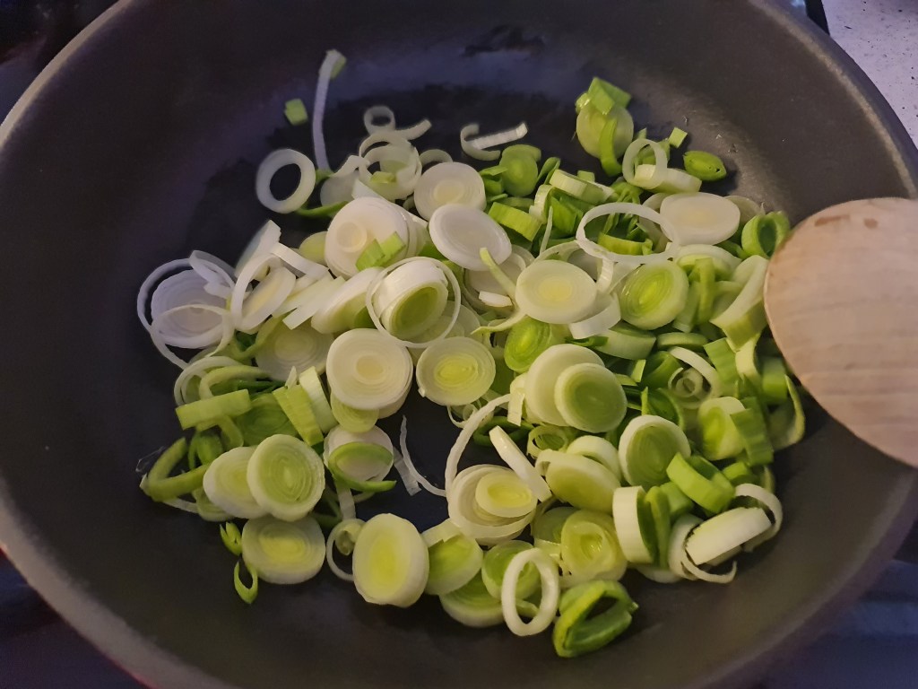 1 стрък праз (около 120 г), нарязан на шайби с 2 – 3 мм дебелина