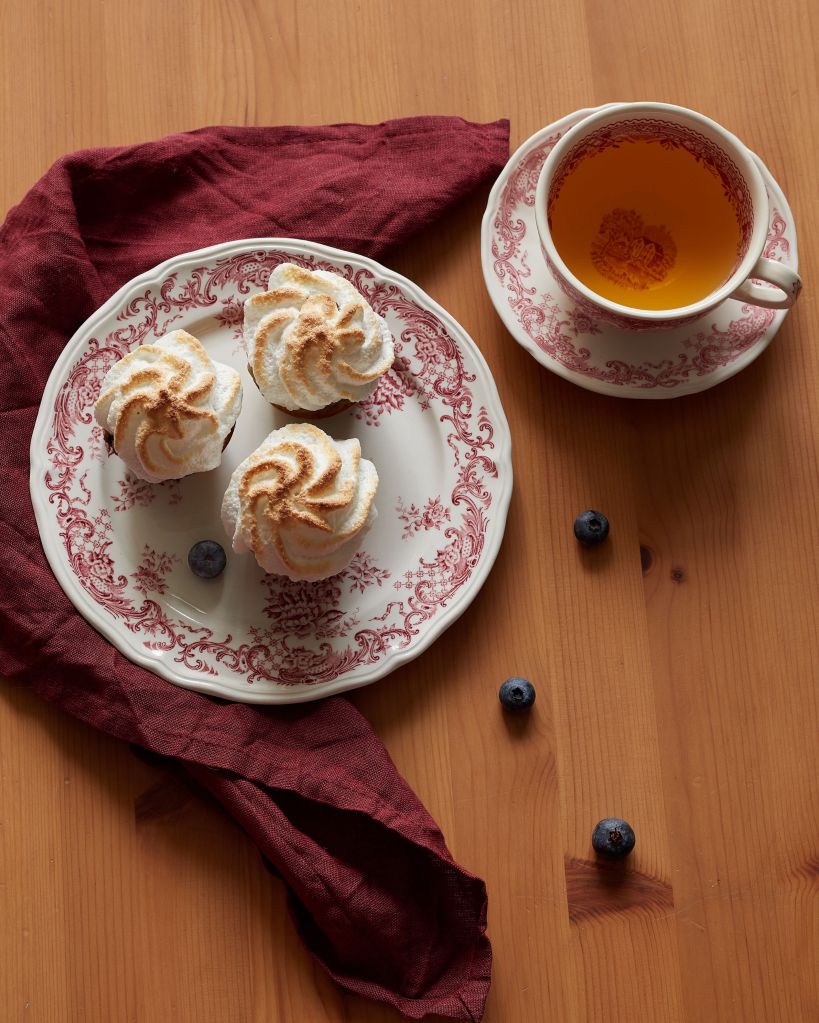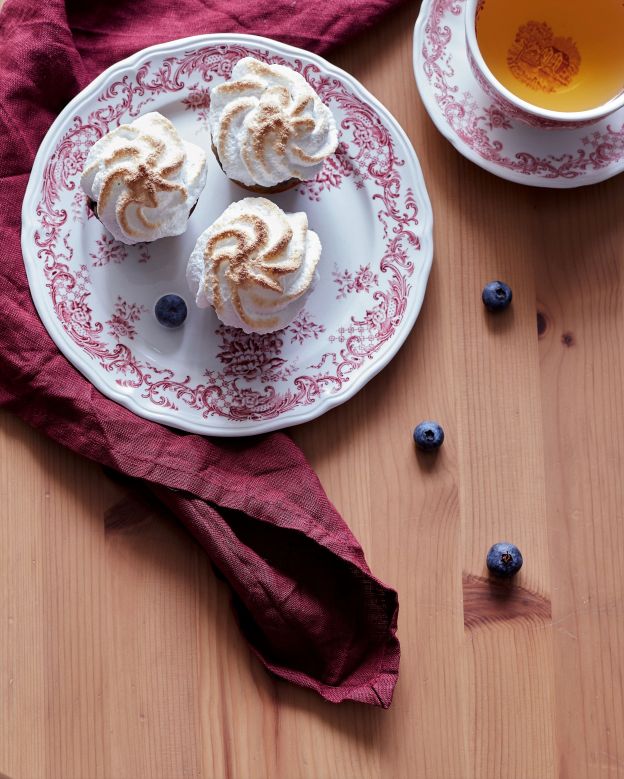 * Ако решите да правите глазура, най-добре е да ползвате силиконови форми за мъфини, понеже те са гъвкави и ще можете да извадите кексчетата, без да се натроши меренгът. Другата опция е да извадите мъфините от формите, след като са изпечени и поизстинали, да ги подредите в тава на малко разстояние един от друг и тогава да нанесете меренга и да го карамелизирате във фурната. Ако имате сладкарска горелка, декорирайте след изваждане от формите.