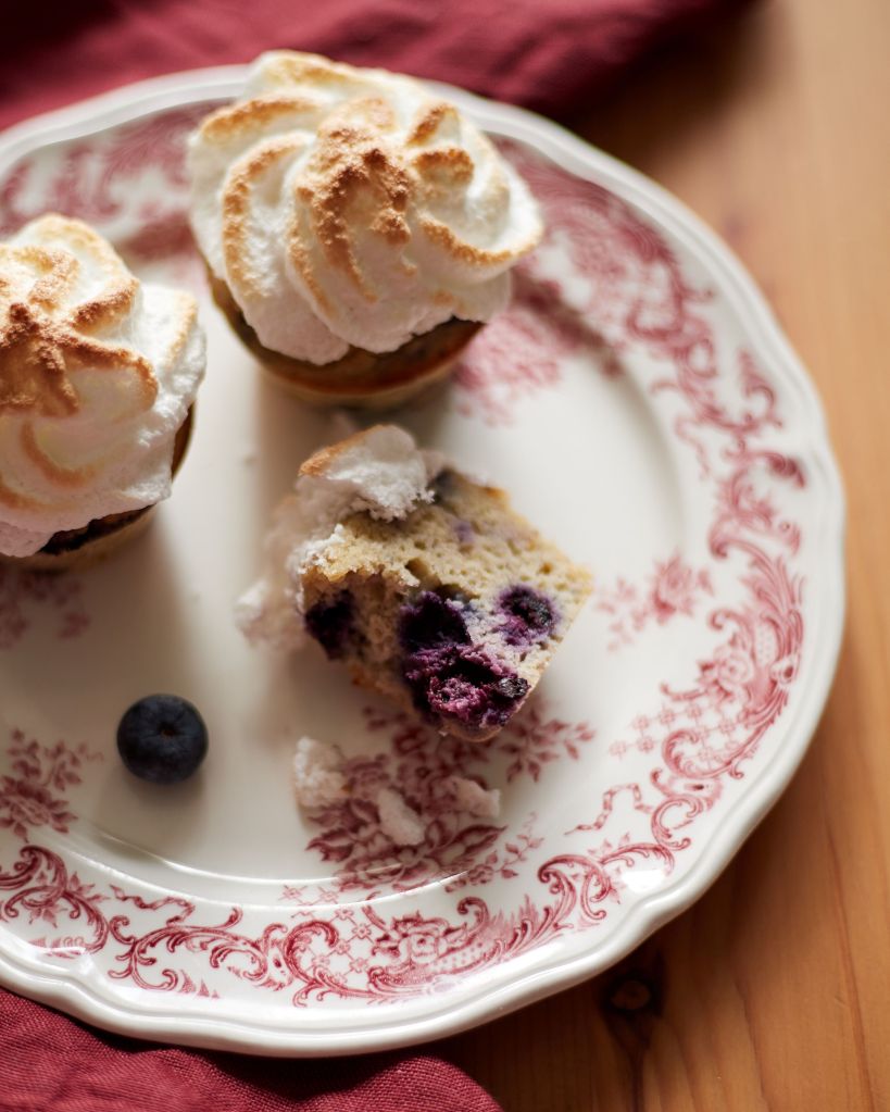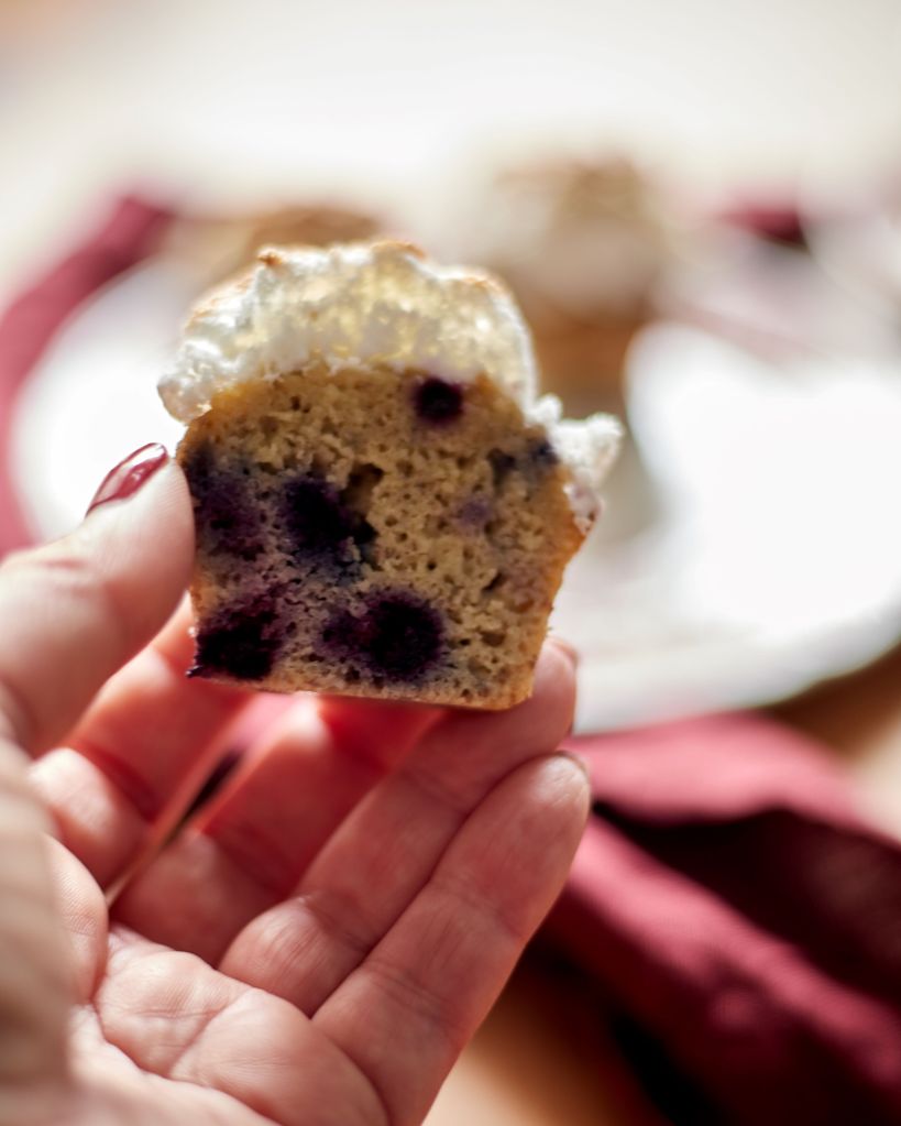 Приготвих ги с бадемово брашно и замразени диви боровинки. Понеже имах останал меренг, добавих и глазура, но тя не е задължителна. Мъфините са прекрасни и без нея.