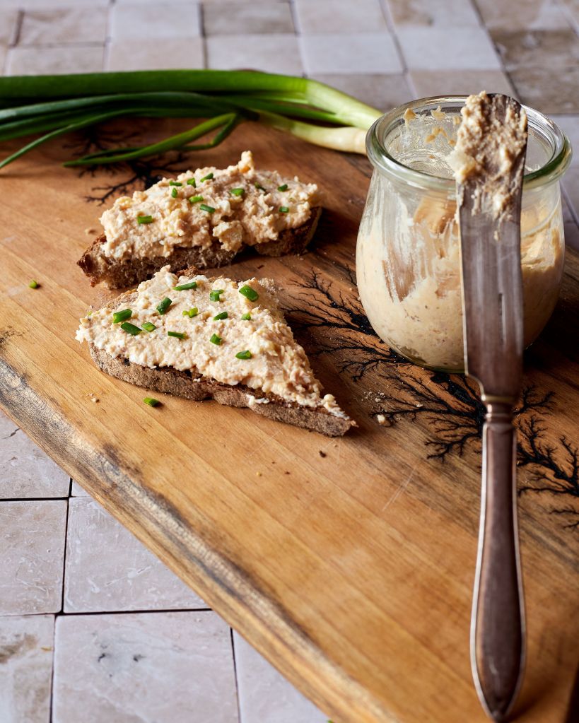 Приготвянето е супер лесно. Аз предпочитам да запазя текстурата и затова намачквам или нарязвам на дребно продуктите, но спокойно може да се блендира до идеално гладка смес. Комбинирайте го с хубав хляб за основа и пресни зелении (лук, копър и др.) за декорация.