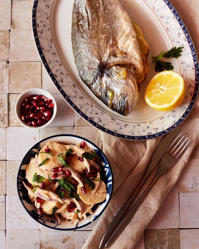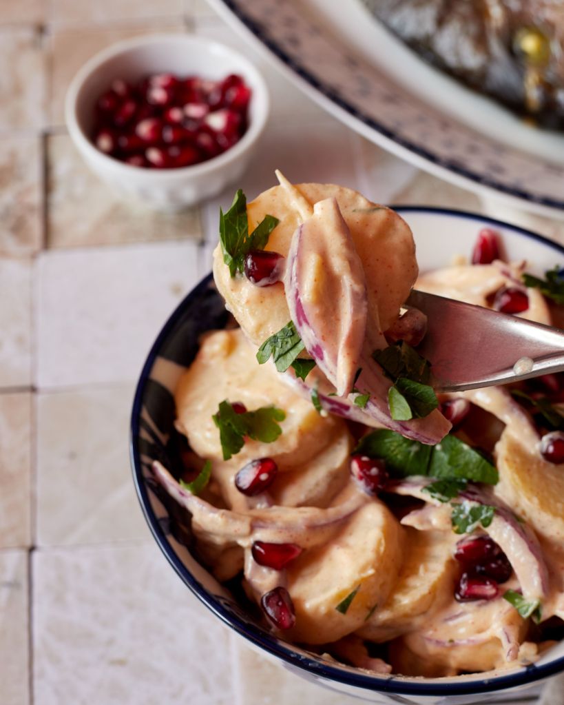 Една нетрадиционна, но много вкусна картофена салата. Попаднах на идеята, докато търсех подходящи гарнитури за агнешката шаварма, която бях избрала да приготвя за Великден. Пресните картофи са винаги добра компания за агнешко, но ми се искаше да е нещо по-различно.