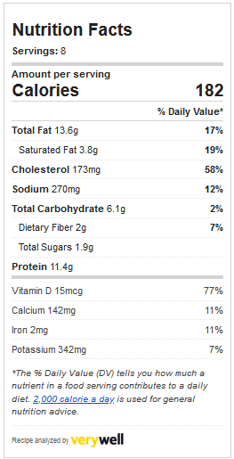 През това време разбийте 6 яйца с изварата. Отделно разбийте другите две яйца и настържете при тях около 25 г пармезан и индийско орехче.