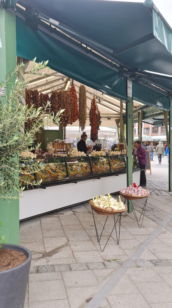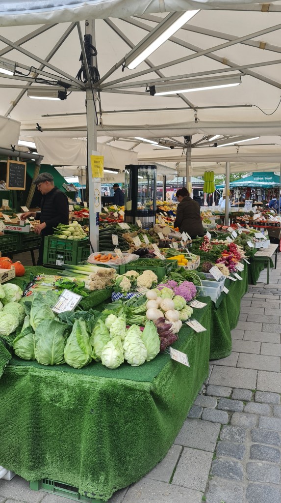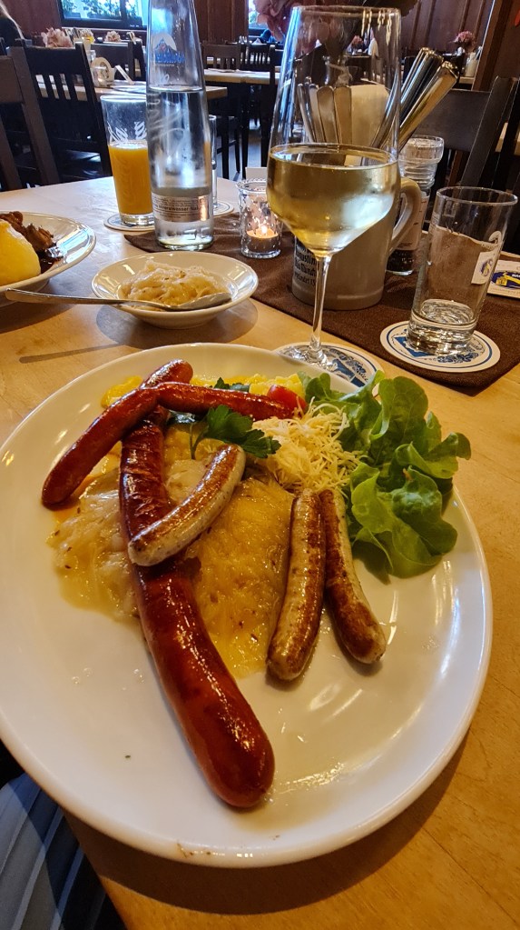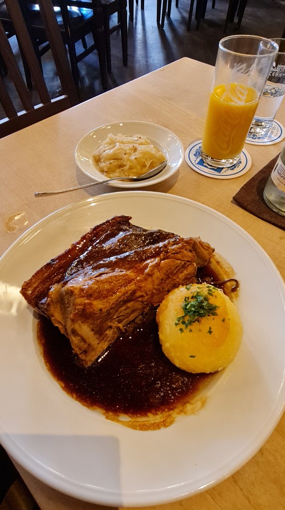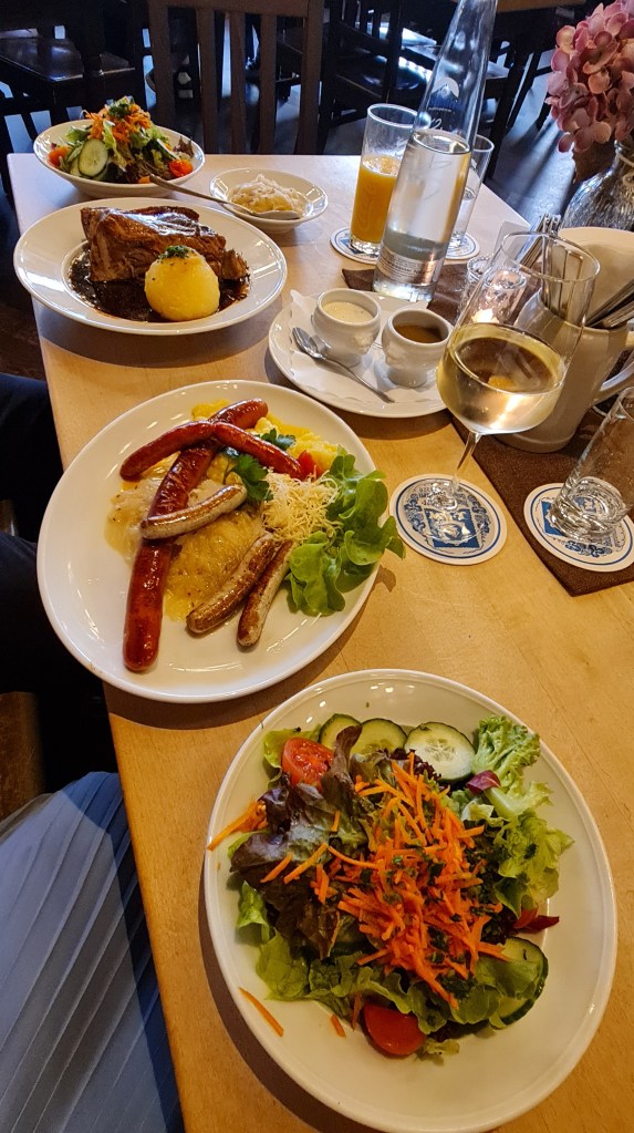 Понеже това е кулинарен блог, няма как да не обърна повече внимание на храната. Ако искате да опитате местна кухня, има много добри ресторанти, които сервират баварски специалитети. Имайте предвид, че са основно с месо и порциите са големи. Моето скромно мнение е, че е добре да се споделят, освен ако не сте решили да ядете само основно. Месото обикновено е придружено от картофи под някаква форма и кисело зеле. Аспержите също са много на почит тук. Десертите са много и са сладки. Подобно на Австрия и тук има голямо разнообразие на торти. Мюнхен е идеално място за любителите на бирата. Аз не съм от тях и се придържах към местните вина (сухият ризлинг е прекрасен). Мога да препоръчам Augustiner Klosterwirt, който се намира точно до женската църква (Frauenkirche). Обслужването е бързо и любезно. Порциите (както споменах) са огромни и храната е вкусна.