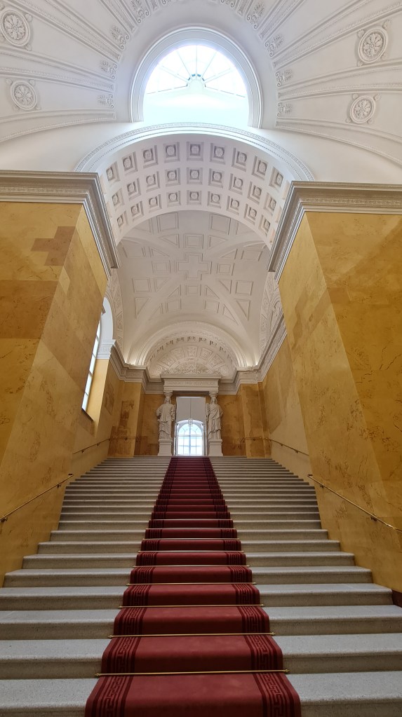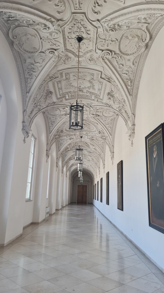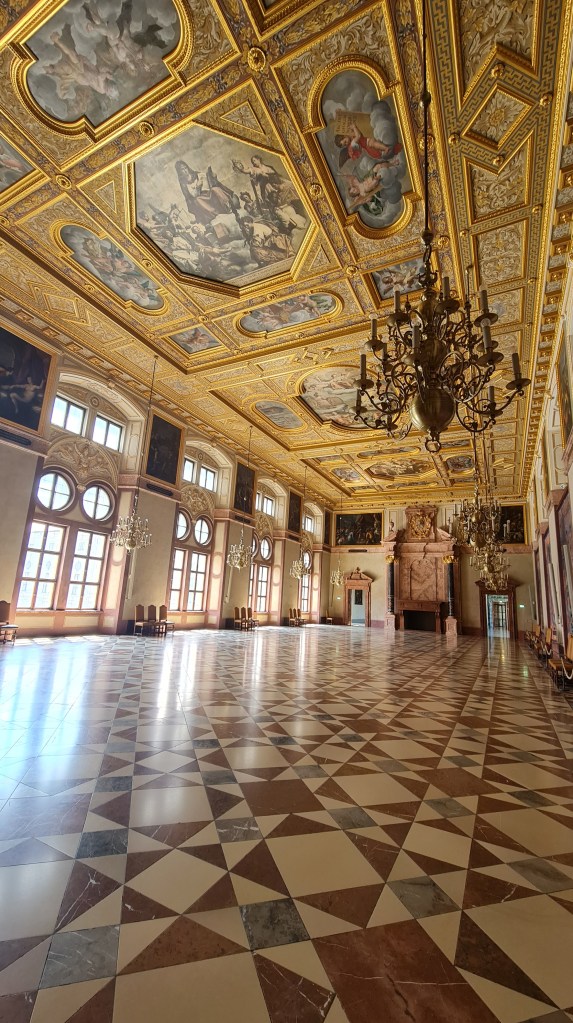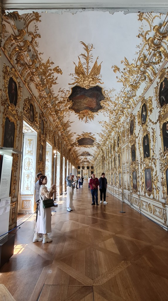 Резиденцията си заслужава да й отделите време, ако харесвате такива места. Тя е била дом на управляващата фамилия Витенбах и всяко поколение е допринесло за това, което можем да видим днес. На последния етаж (не на покрива) Лудвиг II е имал дори езеро, в което е плавал с лодка. След смъртта му езерото е пресушено, понеже постоянно имало течове. Тази точно част е пострадала от бомбардировки през втората световна война и не е била възстановена в предишния й вид. Тук има по нещо за всеки вкус – богато обзавеждане, картини, красиви тавани, полилеи, порцелан – както автентичен китайски и японски, така и прекрасни сервизи за хранене, свещници и декорации. Пълният тур е 130 стаи и отделно от това има експозиция с бижута, корони и други ценности. Нея я пропуснахме. Общо отнемат около 4 часа и има две места, на които можете да съкратите визитата, пропускайки някои стаи.
