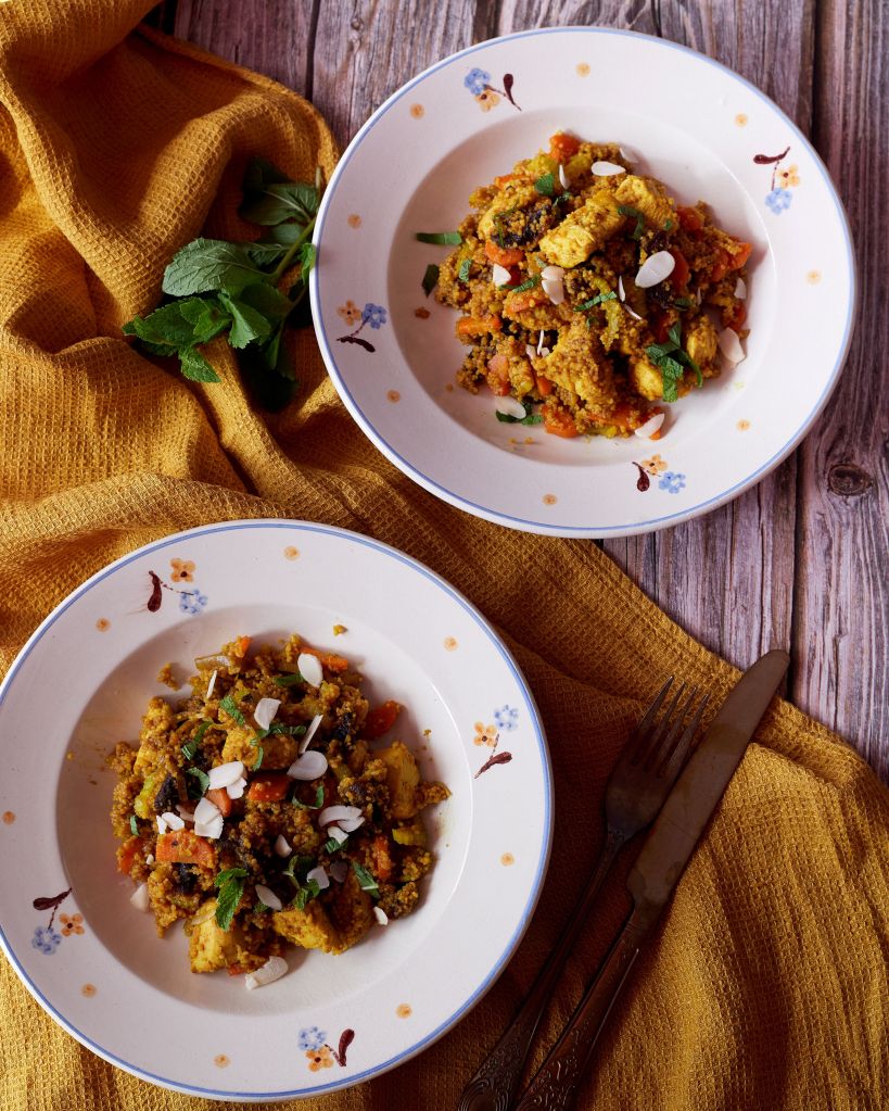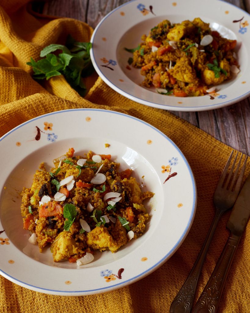 Много харесвам мароканската кухня, но избягвах кускуса заради глутена. Пробвала съм няколко вида безглутенов, но беше от едрия, който никак не харесвам, защото иска варене и вкусът е … ами, не е като на марокански кускус.