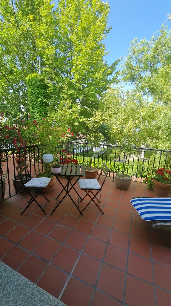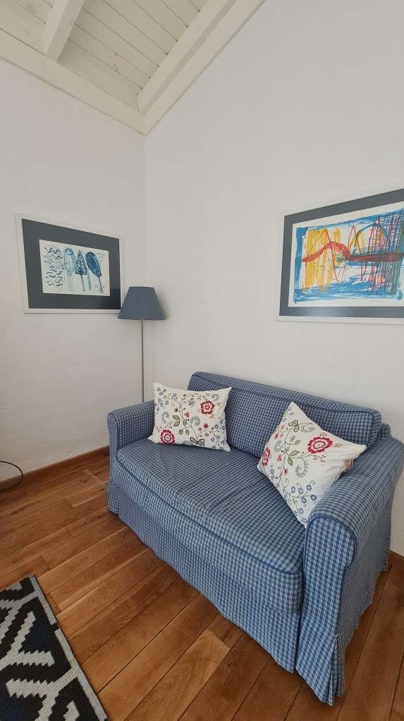Стаите са големи и всяка е обзаведена различно. Нашата беше много морска в бяло и синьо. Гледката ни беше към задния двор, но имахме чудесна, просторна тераса с масичка и шезлонг.