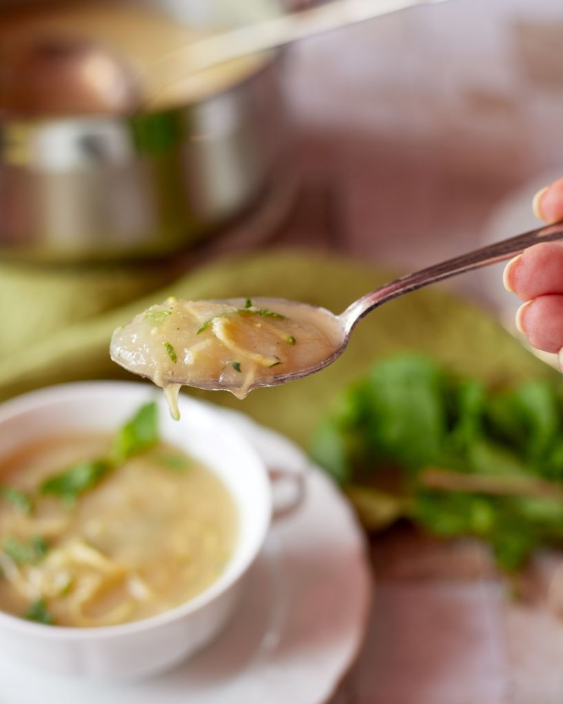 По някаква причина това прави приема по-лесен. Затова днес ви предлагам тази крем супа, която е основно от алабаш със скромното участие на картофи, лук, чесън и настъргани тиквички, за разчупване на скучната текстура.