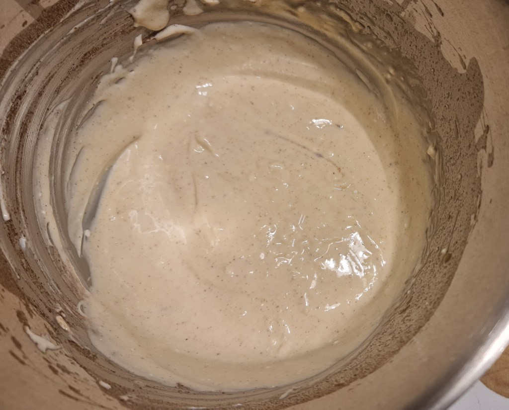 В купичка смесете еритритола с канелата и индийското орехче и разбъркайте добре. Отделете 3 с.л. и оставете на страна.