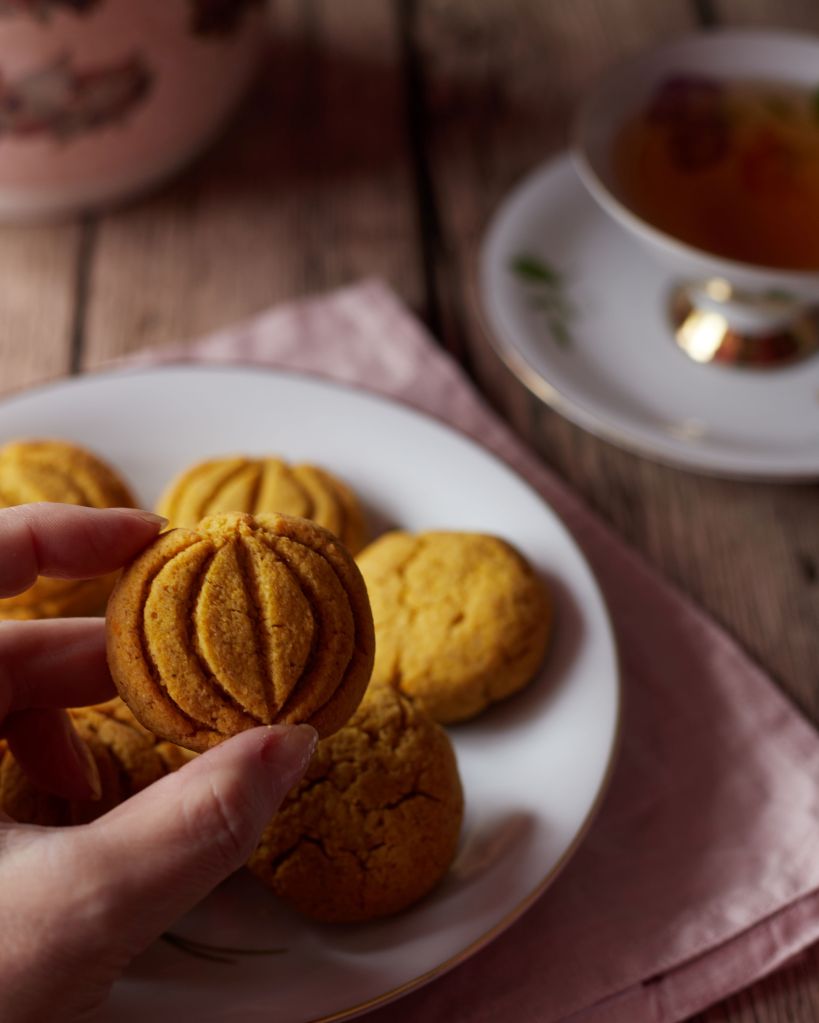 За следобедния чай или за моментите, когато просто искате да се насладите на нещо малко, но вкусно и необичайно. Тиква и мисо е една от любимите ми комбинации. Всъщност оттам тръгнах с търсенето, но след това реших, че вместо кокосовото масло в оригинала ще сложа кафяво.