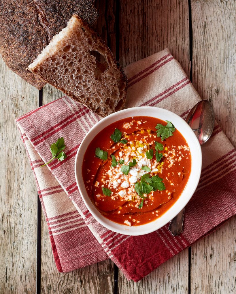 За тази супа спокойно можете да използвате консервирани печени чушки, което ще ви спести време и усилия. Общото време за приготвяне е под час.