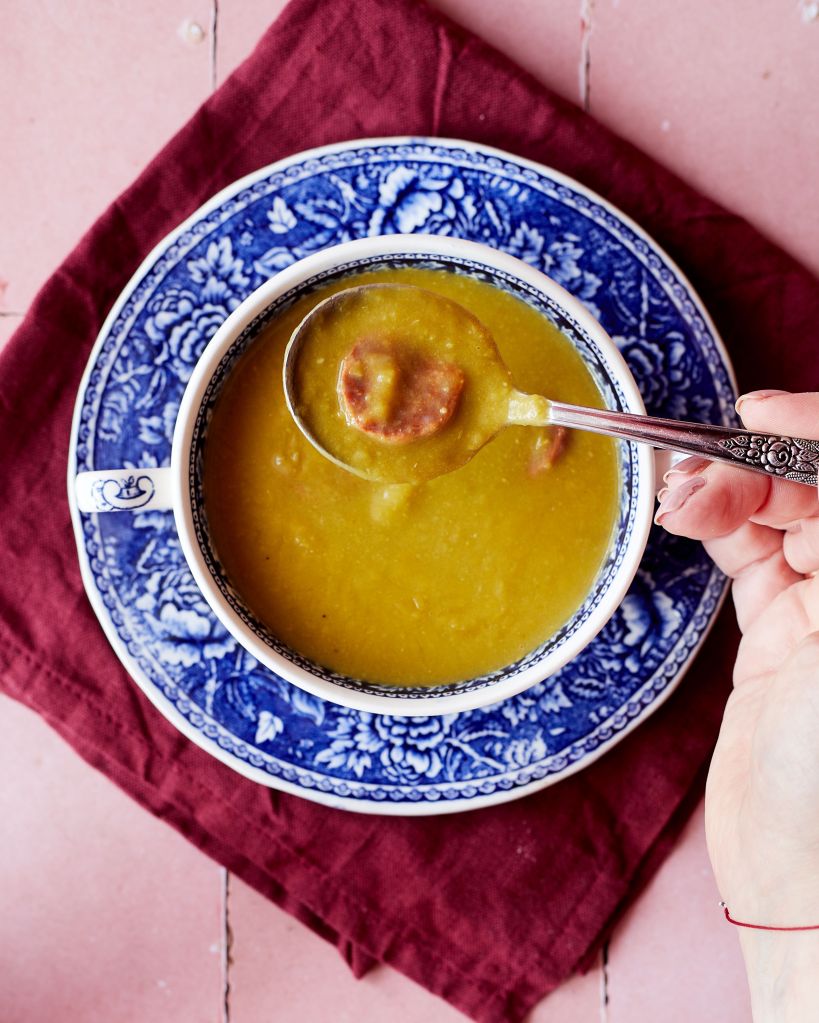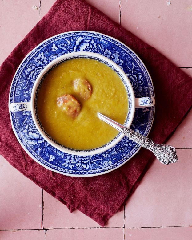 Лично аз много обичам грах и общо взето винаги имаме пресен, замразен или консервиран, според сезона и наличностите. Поколебах се между това ястие и португалската класика грах с яйца, но супата спечели. На вид не е нищо особено, но, повярвайте ми, вкусът е уникално добър. А приготвянето е супер лесно.