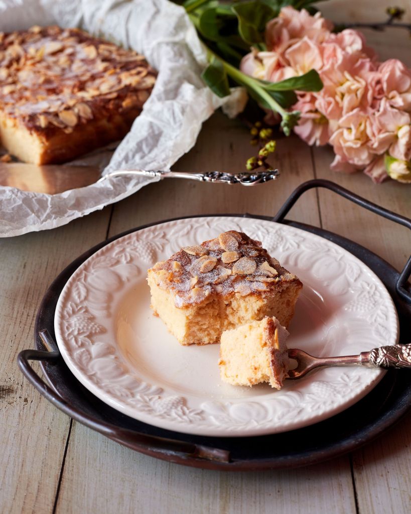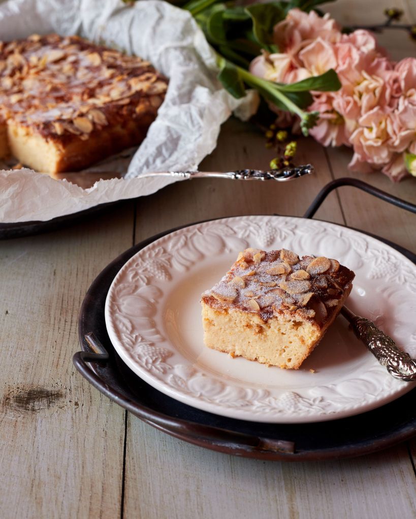 Оригиналът на тази рецепта е италианската класика кейк с бадеми и рикота. Направих я с извара и добавих малко марсала и настъргана портокалова кора за аромат. Между изварата и рикотата има известни разлики, но според мен те са пренебрежимо малки и двата продукта са взаимозаменяеми, особено в такива рецепти.