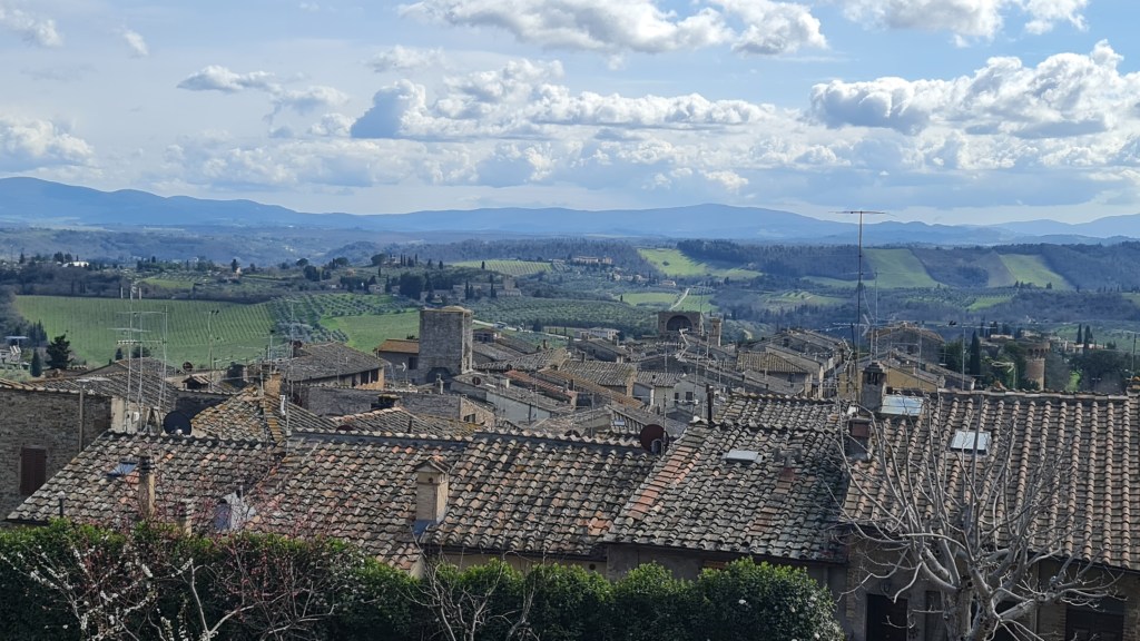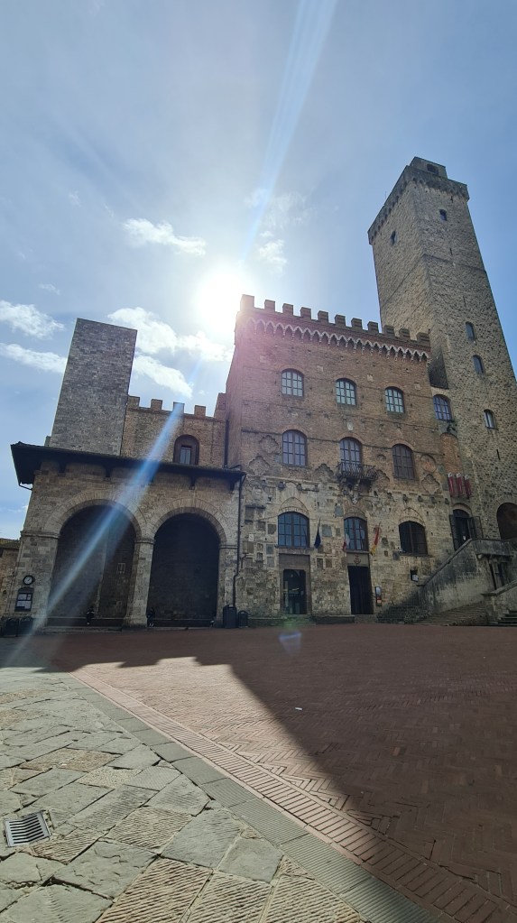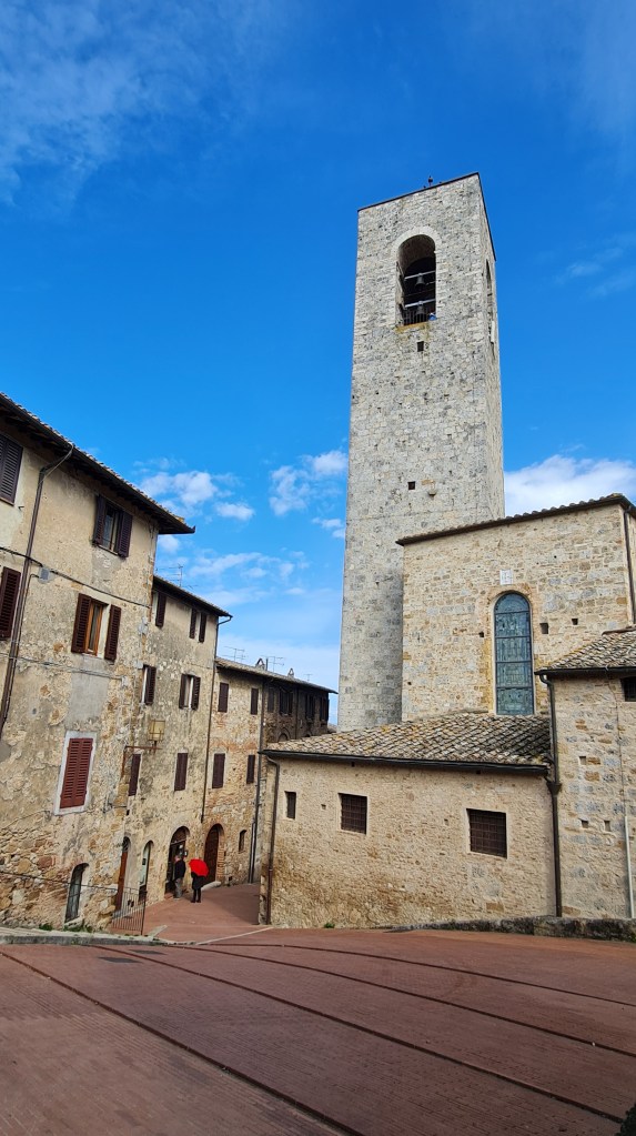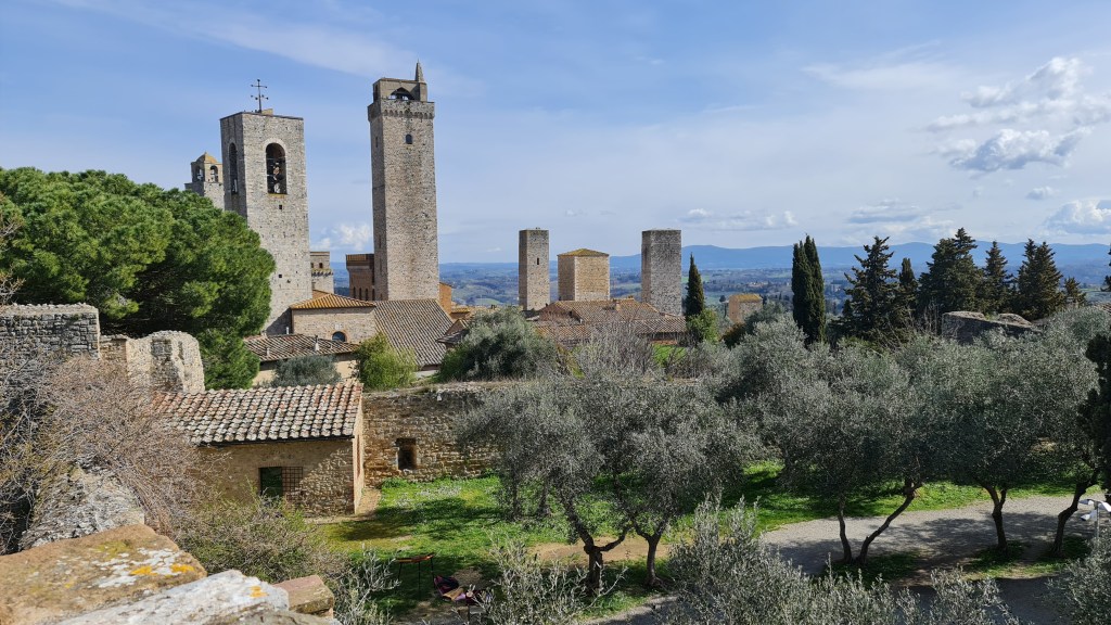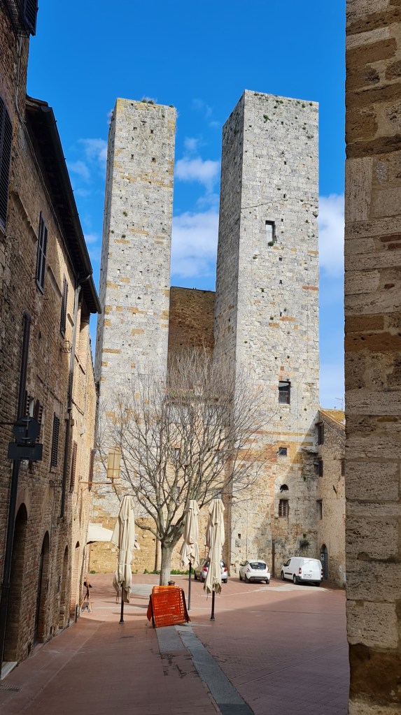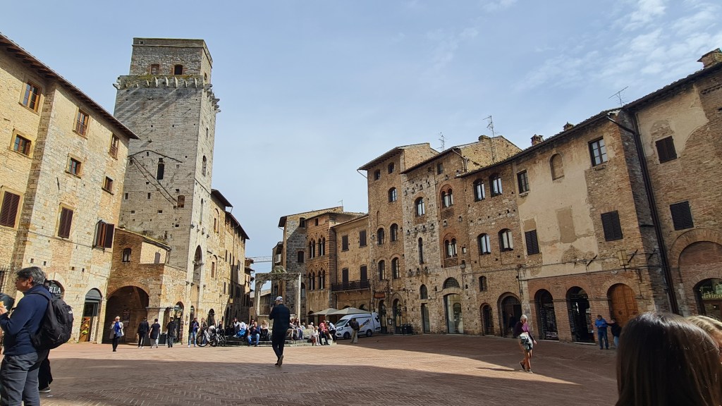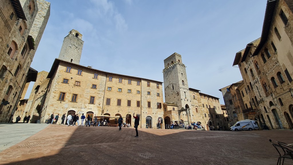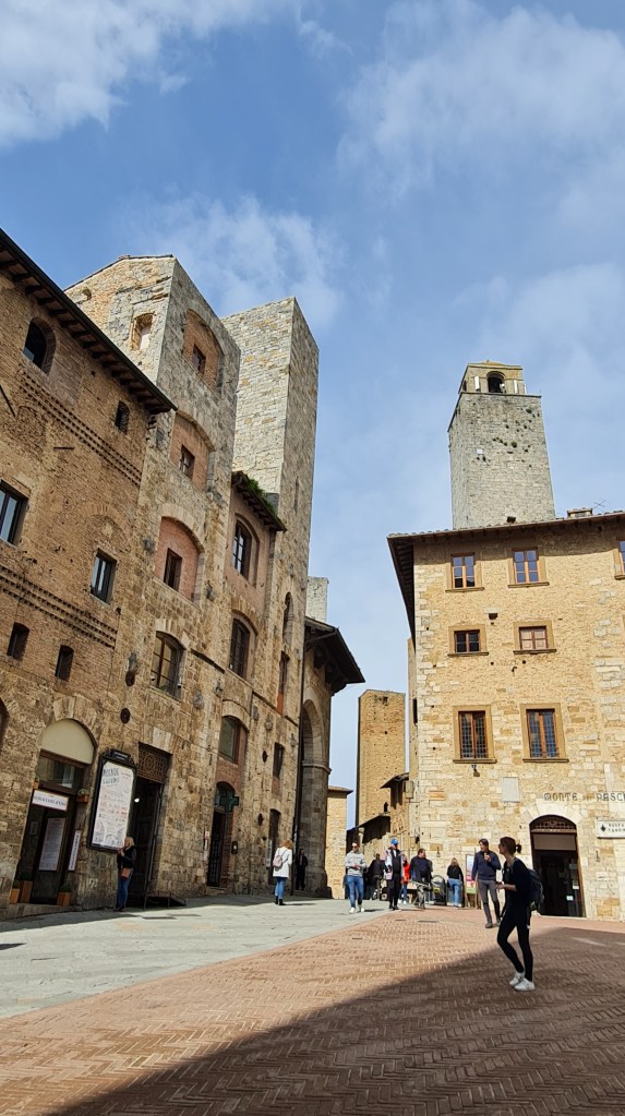 Сан Джиминяно е малко средновековно градче, построено на хълм в близост до Сиена (около 40 – 50 минути с кола). Уникално е с това, че тук са запазени много от високите средновековни кули (14 на брой) и гледано от страни (или от дрон) напомня на град с небостъргачи. Дори се твърди, че архитектът на кулите близнаци Минору Ямазаки е решил да са две, а не една (според оригиналния план), след посещение в Сан Джиминяно.