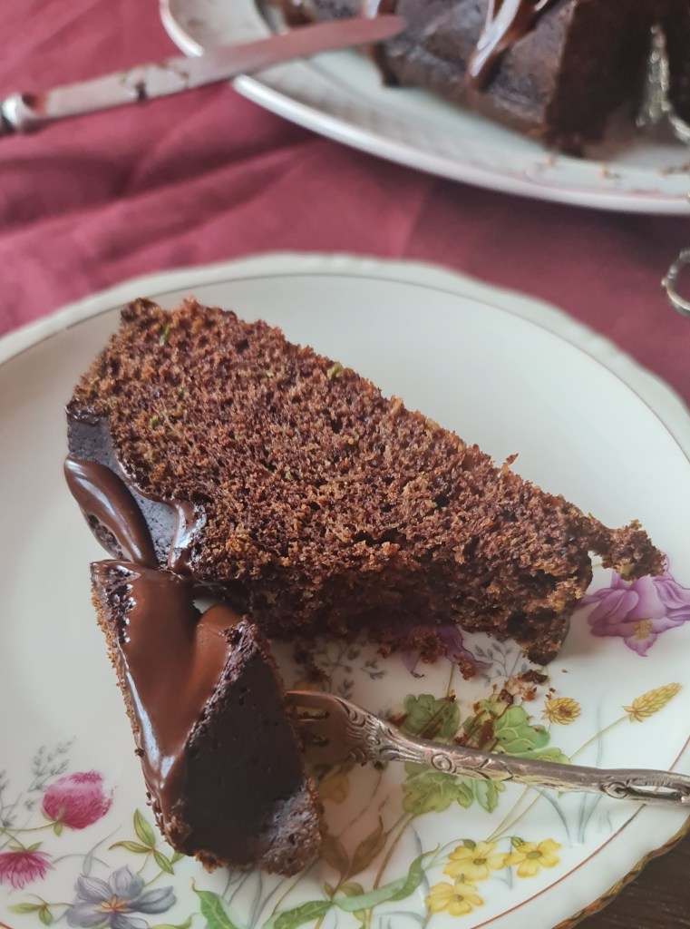 Не дочаках местните тиквички и открих сезона с вносни. Нямах търпение да пробвам този кейк с нахут, кисело мляко и зехтин. Получи се прекрасна текстура с хубав шоколадов вкус, който дообогатих с шоколадова заливка.