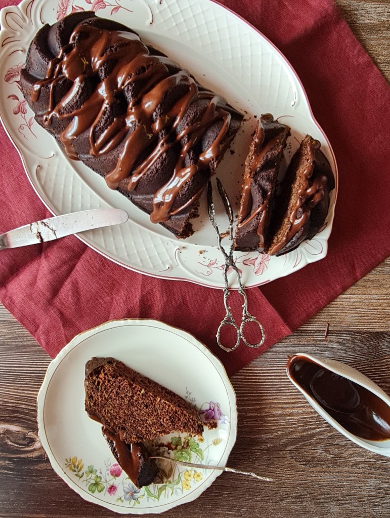За този кейк ползвах какаова маса (неподсладена). Направих го естествено безглутенов и подсладих с еритритол. В последния момент реших да ползвам една красива, но леко претенциозна метална форма за кейк и, откровено казано, не бях сигурна дали ще излезе добре от нея. Подготвих формата със зехтин и я поръсих с какао и нямаше никакви проблеми. Ако не сте правили кейк с тиквички, тази рецепта е идеална за първи опит.