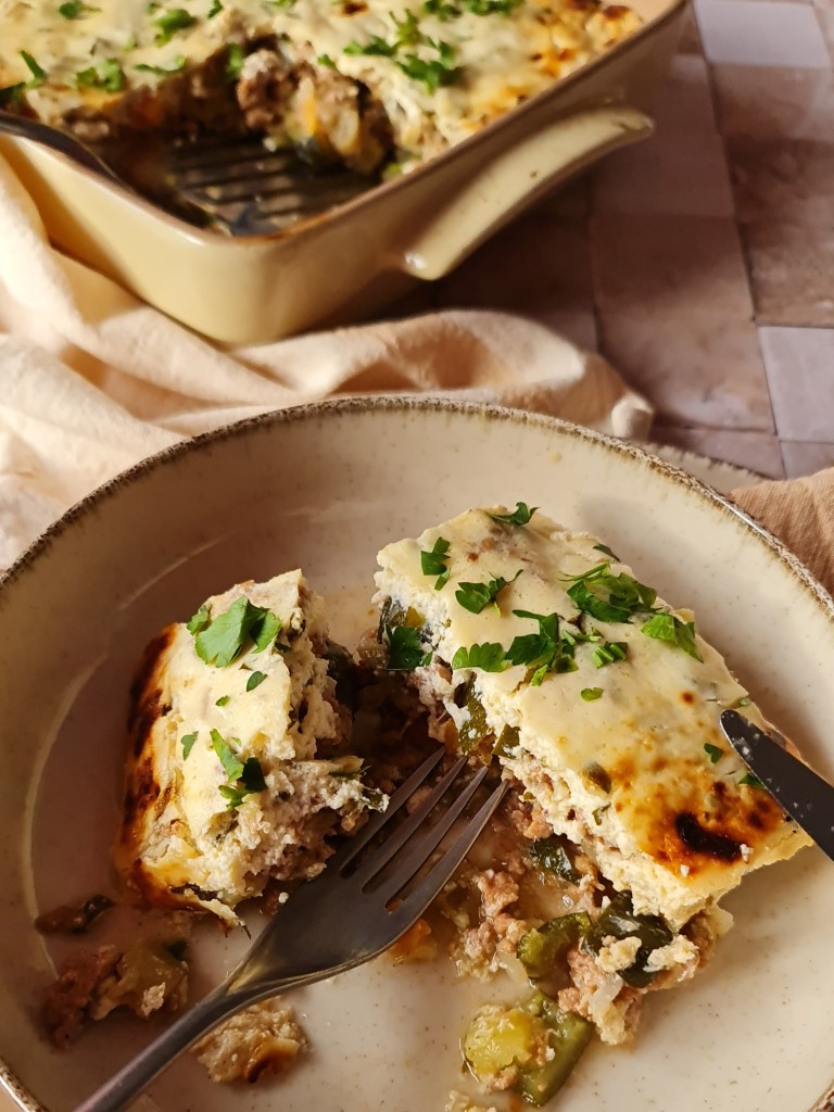 Едно от най-любимите балкански ястия. Тази версия е нещо по средата между мусаката от моето детство с картофи и заливка от кисело мляко и гръцкия оригинал с падладжани. Олекотена откъм въглехидрати и с пуешко вместо традиционната смес кайма, тя е идеална за тези, които искат да увеличат количеството зеленчуци и протеин в менюто си.