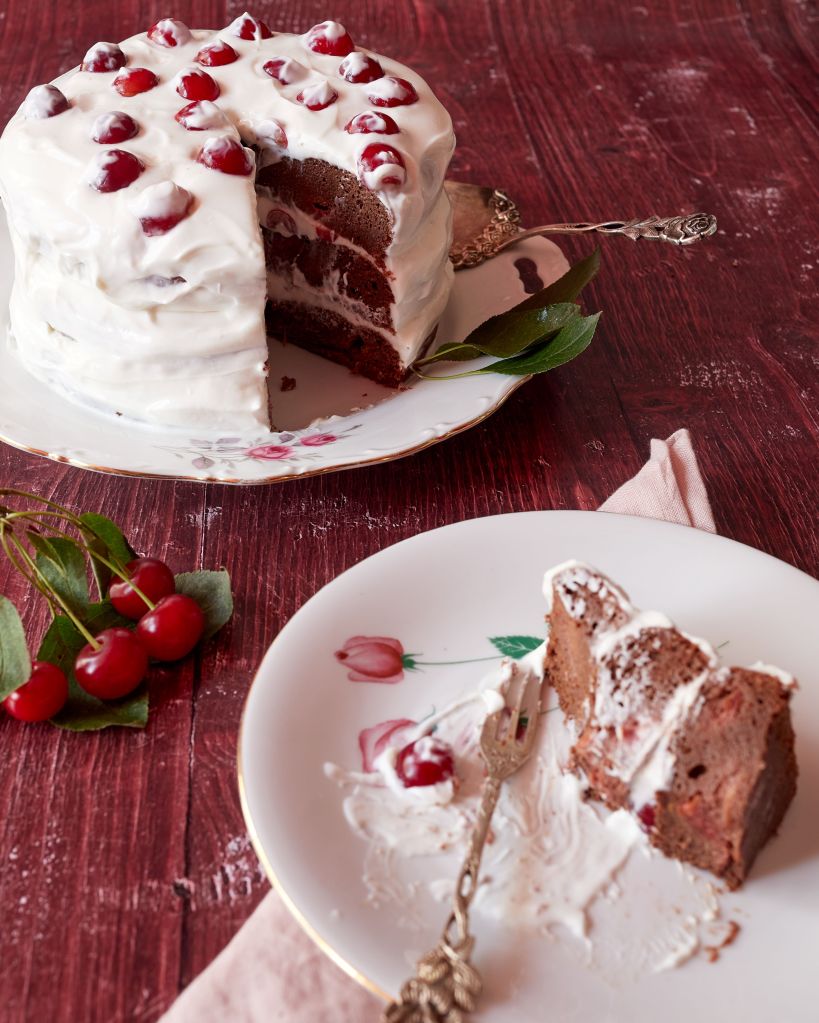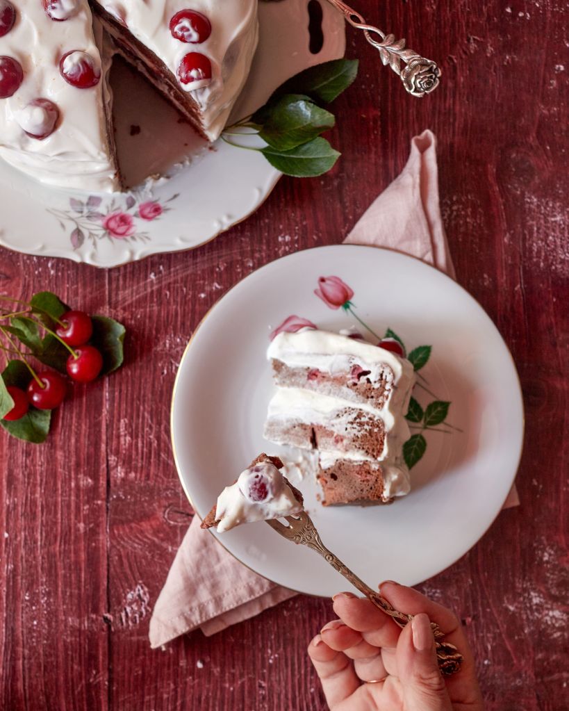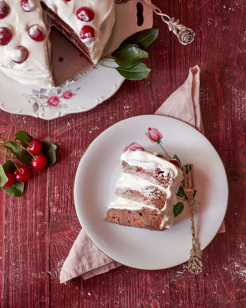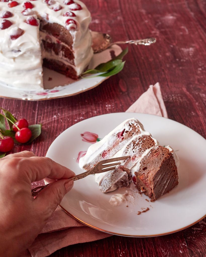 За крема заложих на свежест и простота – цедено кисело мляко с малко сметана (10%). Замислих се дали да добавя какао, но реших да оставя красивия контраст с тъмните блатове. Ако обичате шоколад и вишни, непременно си запазете тази рецепта и я пригответе. Няма да ви разочарова.