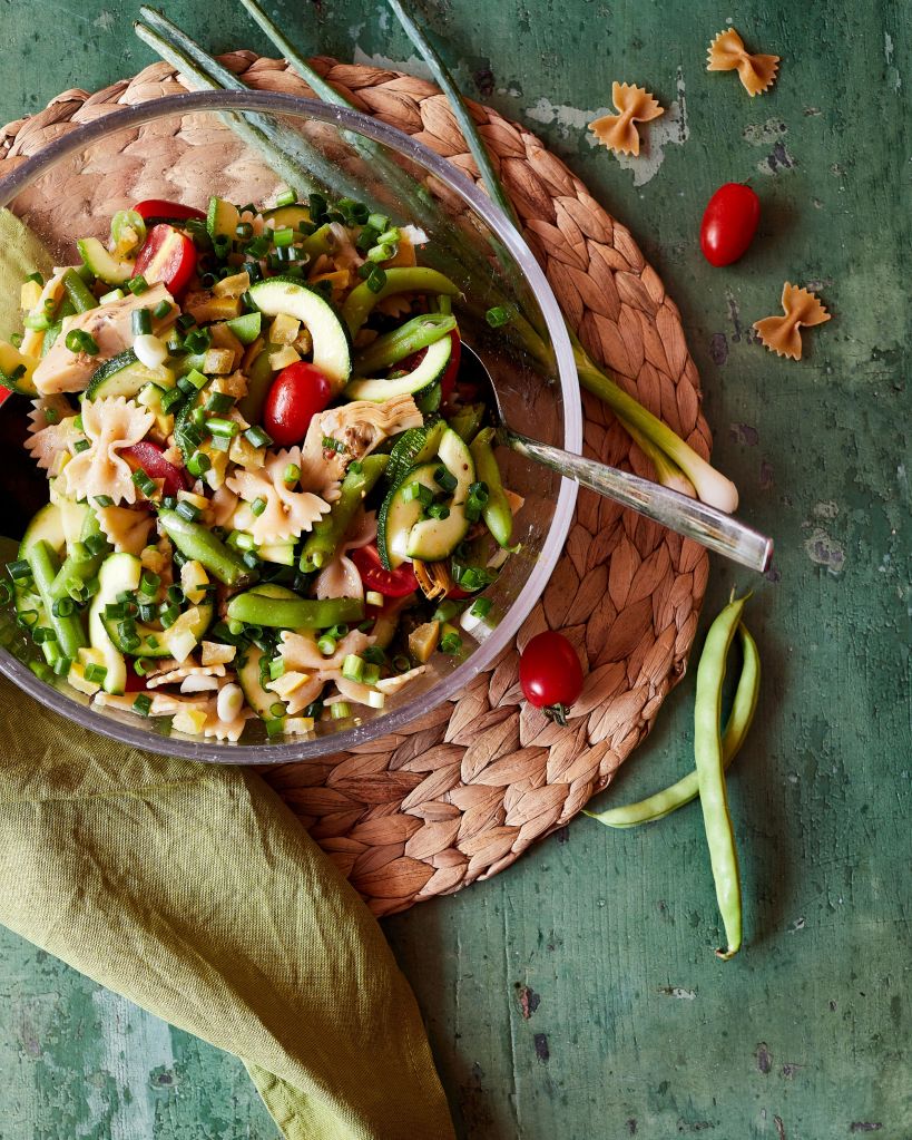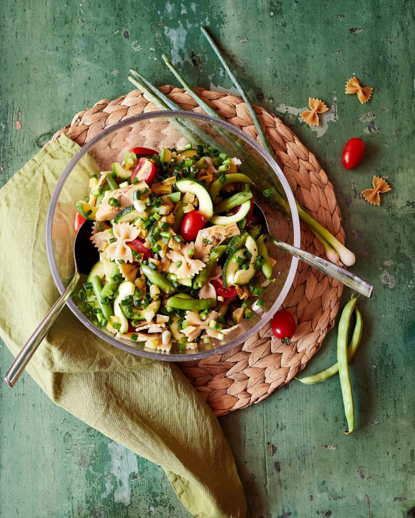 Днешната рецепта е за една лесна и бърза лятна салата с паста. Почти не се налага да ползвате котлон, но все пак трябва да се свари пастата и да се бланшира френския боб. Извън това всичко в тази салата е сурово и веган.
