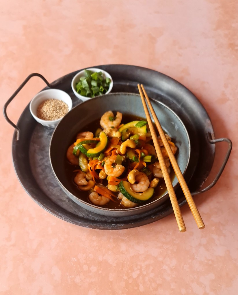 Азиатската кухня ми харесва, но не ми е най-любимата. Преди нея със сигурност се нареждат средиземноморската (вкл. северноафриканска) и френската. Но тя има едно огромно преимущество за лятото – краткото време за готвене. Колкото и да е пипкава една рецепта, обикновено времето на котлон е около 10 минути. А тази не е такава и от изваждането на продуктите от хладилника до сервирането ви делят не повече от 30 минути.