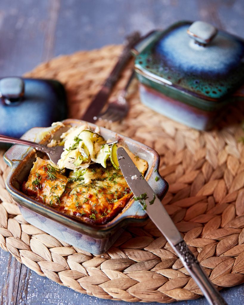За да избегна разводняване от влагата в тиквичките, ги посолих и отцедих, след което ги подготвих в air fryer – 6 минути на 195 градуса. Използването на фурна е неизбежно, но ако се престрашите, обещавам, че няма да съжалявате.
