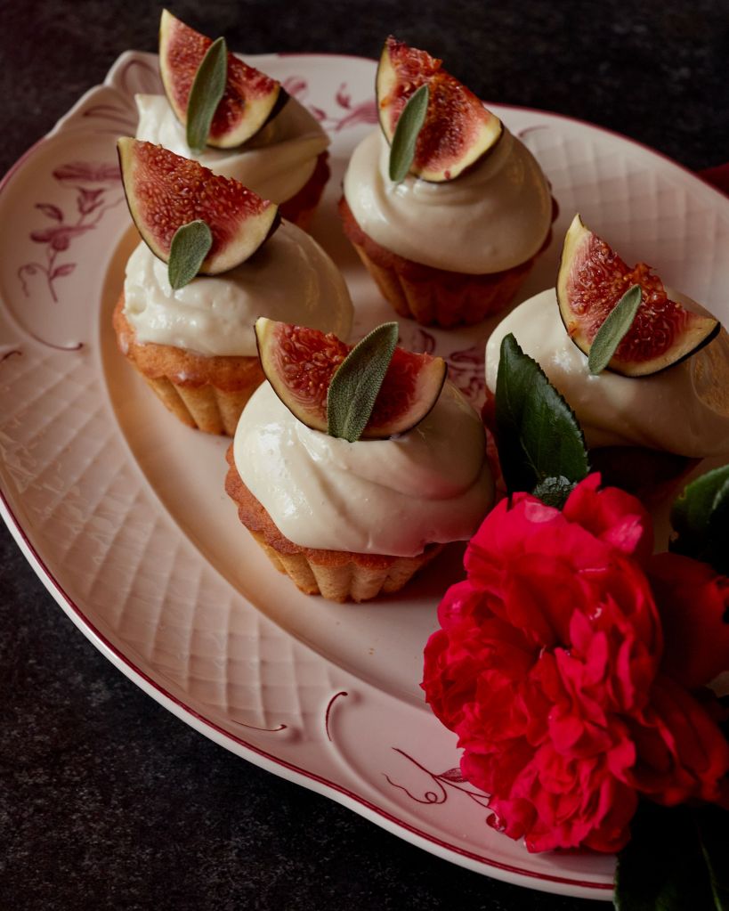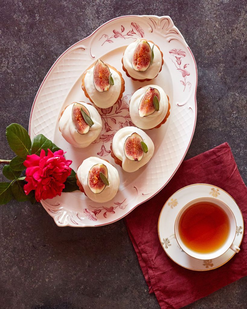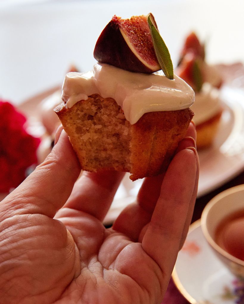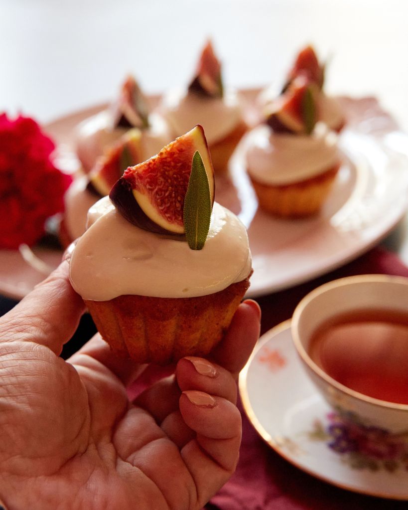 След няколко промени по рецептата реших да направя мъфини, които да декорирам с горгонзола, смокини и листа от салвия. Смокините са точно в сезон и са неустоимо вкусни, а горгонзолата и салвията са идеална компания за тях.