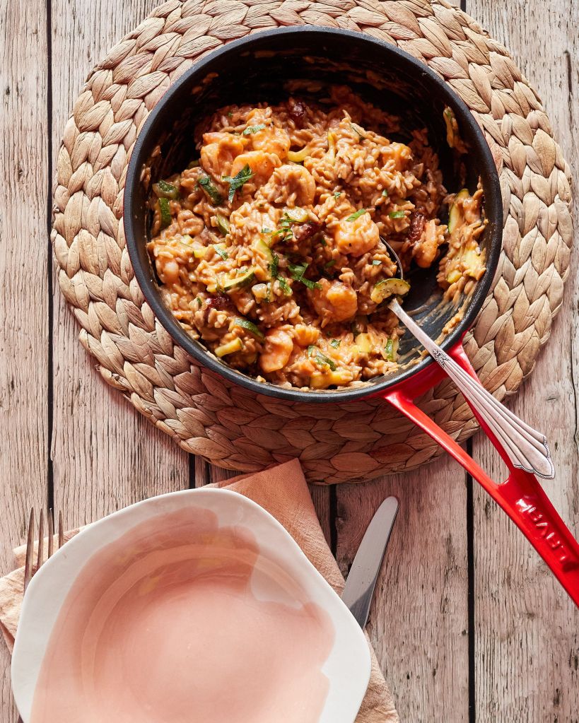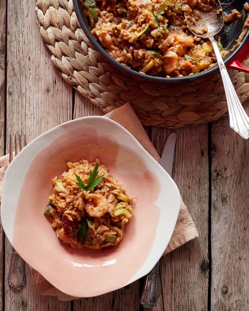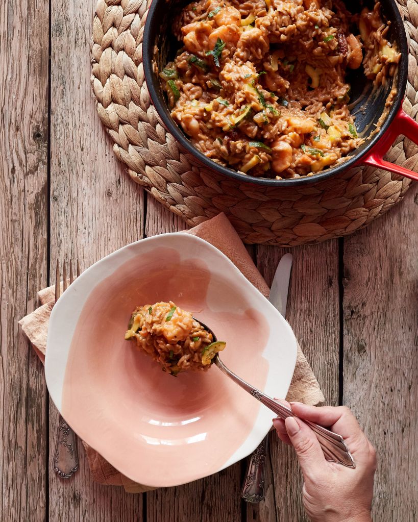 Приготвянето е както при класическо ризото, но отнема по-малко време. Ястието е много вкусно и ароматно. В никакъв случай не е ниско въглехидратно, но има почти 35 г протеин в една порция.
