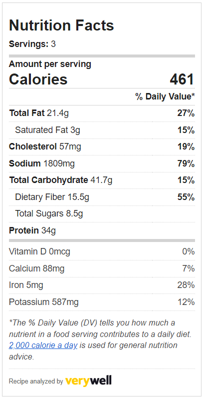 Количествата от оригинала също претърпяха известни промени, но крайният резултат си заслужаваше. Салата за основно с 15 г фибри и 34 г протеин.