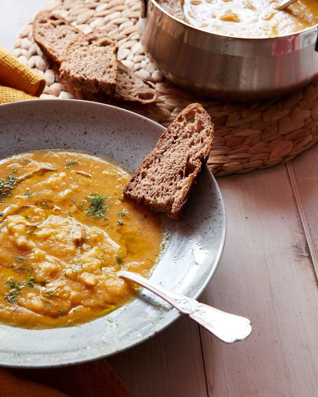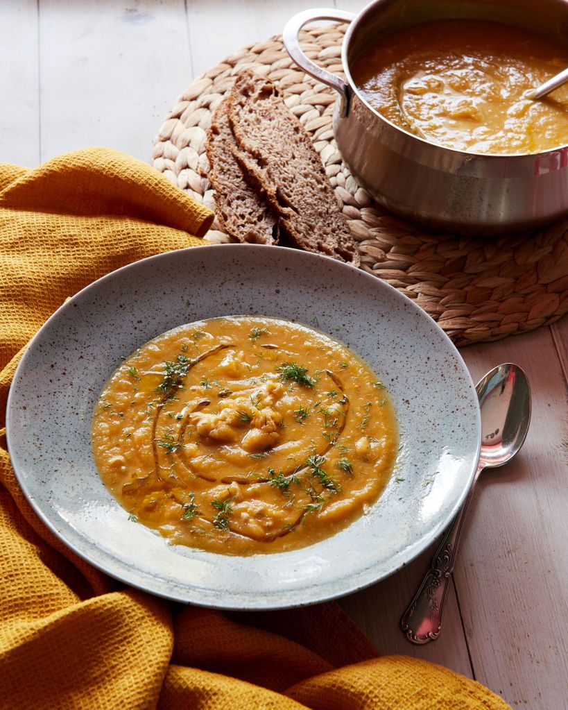 Да, супа е. Не, не е тиквена. Но е със сезонни зеленчуци и може приятно да разнообрази пейзажа на пилешките супи в кухнята ви.