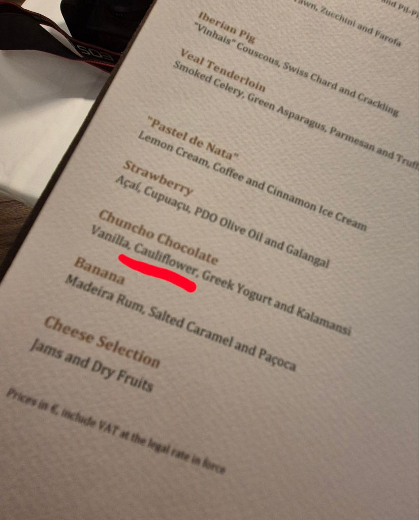 Освен закуските имахме два обяда и една вечеря. Единствената предварително направена резервация беше за INdiferente, който е висок клас ресторант от пътеводителя Michelin. Шеф готвачът е бразилка и това се усеща в ястията. Много приятно изживяване. Имаше два вода amuse bouche и комплимент след десерта. За пръв път попаднах на десет с карфиол и нямаше как да не го опитвам – много сполучлив. Карфиолът се усеща, без да е прекалено натрапчив.
