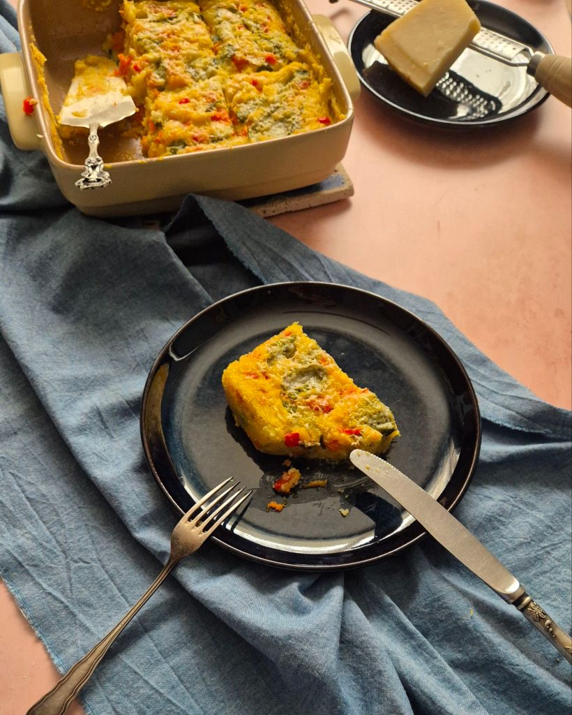 Тази рецепта е за полента, която се приготвя на котлон, по стандартния начин, но след това се запича във фурната. Намерих идея в http://www.woolworths.com.au , в която полентата беше съчетана с тиква и понеже имах малко останала, реших да пробвам нещо подобно. Получи се чудесно предястие, или дори лек обяд, който можете да приготвите предварително. Вкусно е както топло, така и след изстиване.