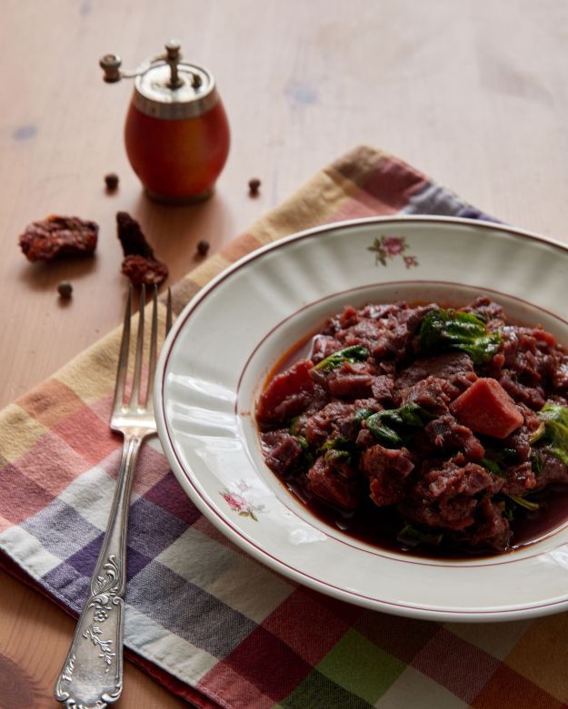 Студеното време е повод да си сготвим нещо стоплящо тялото и душата, като това малко нетрадиционно за нашите ширини ястие, което обаче със сигурност ще ви спечели с богат вкус и аромат. В него събрах праз, моркови и сладки картофи с пуешко месо, сушени домати и две шепи спанак, добавени съвсем накрая.