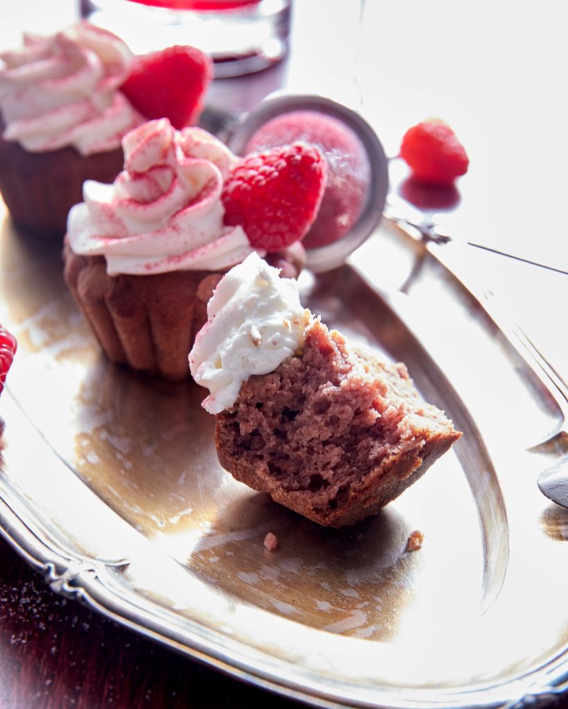 Вдъхновението за тази рецепта дойде от един какаов кейк с бира и портокали. Да, знам, че на пръв поглед нямат нищо общо, но на втори не е така. Замених какаото с прах от лиофилизирани малини, портокаловия сок със сготвени и прецедени малини и бирата с разреден малинов ликьор от 2 Лета (който признавам, че купих основно за такива цели). Вместо масло сложих зехтин, вместо мляко пресечено с лимонов сок – скир и вместо пшенично брашно – смес от елда и лупина. И захарта отпадна, заменена от еритритол. Но запазих пропорциите и замените са с продукти с подобно поведение при печене.