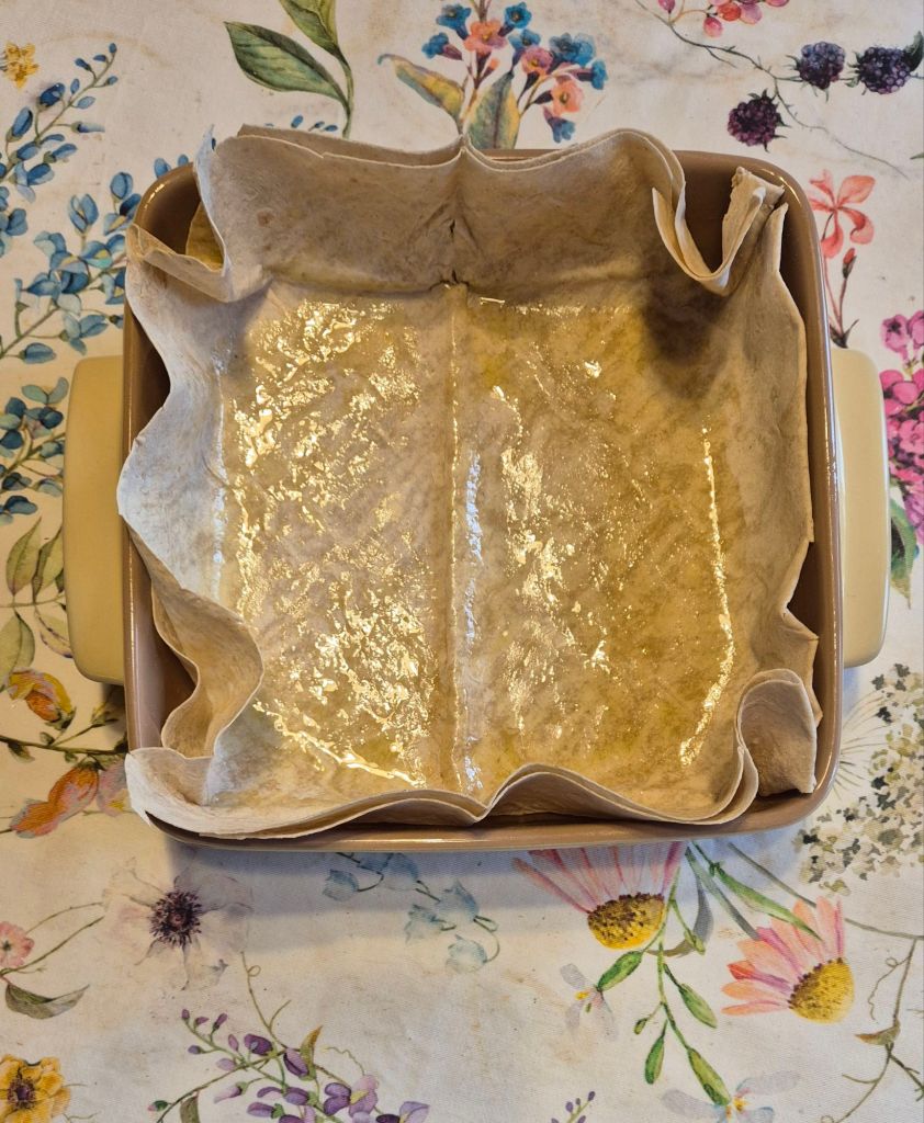 Днешната рецепта е за сладка баниса с крем, вишни и розова вода. За нея използвах кори и юфка. Ако нямате юфка, можете да накъсате една кора на малки парчета и да я изпечете във фурната или в air fryer до златисто и хрупкавост.
