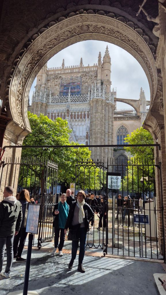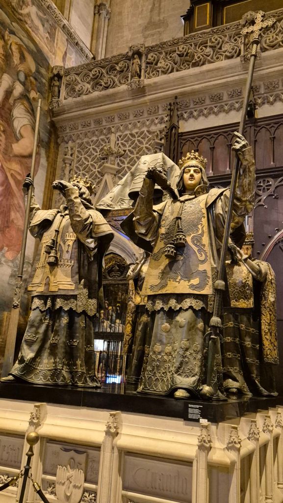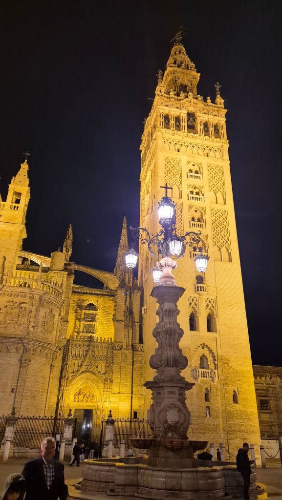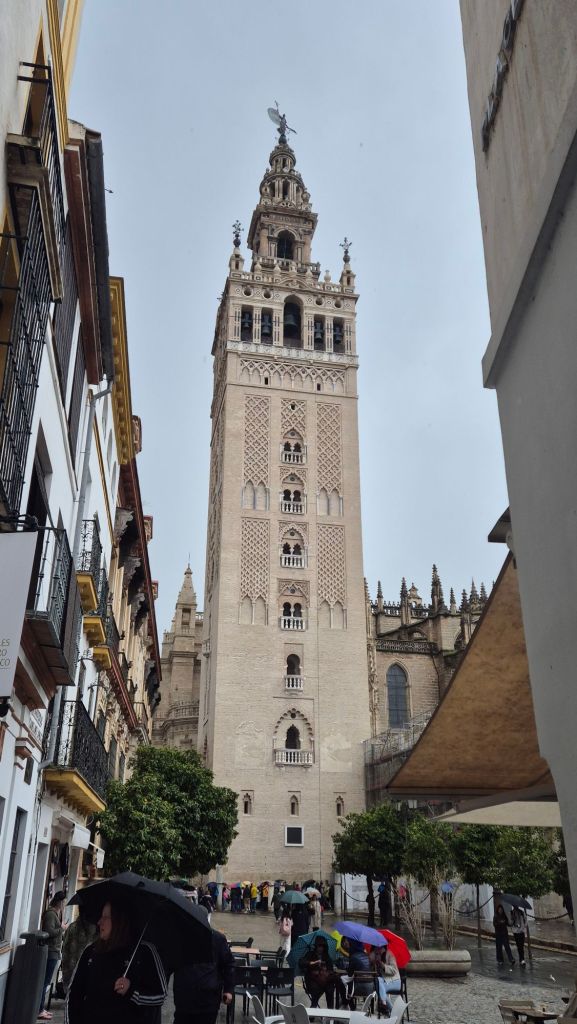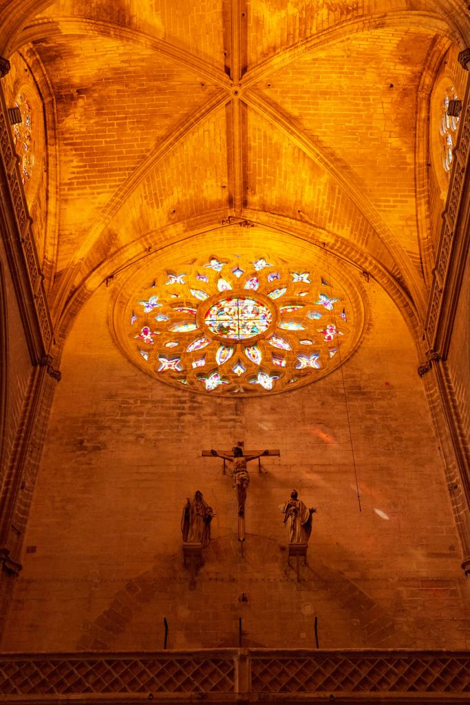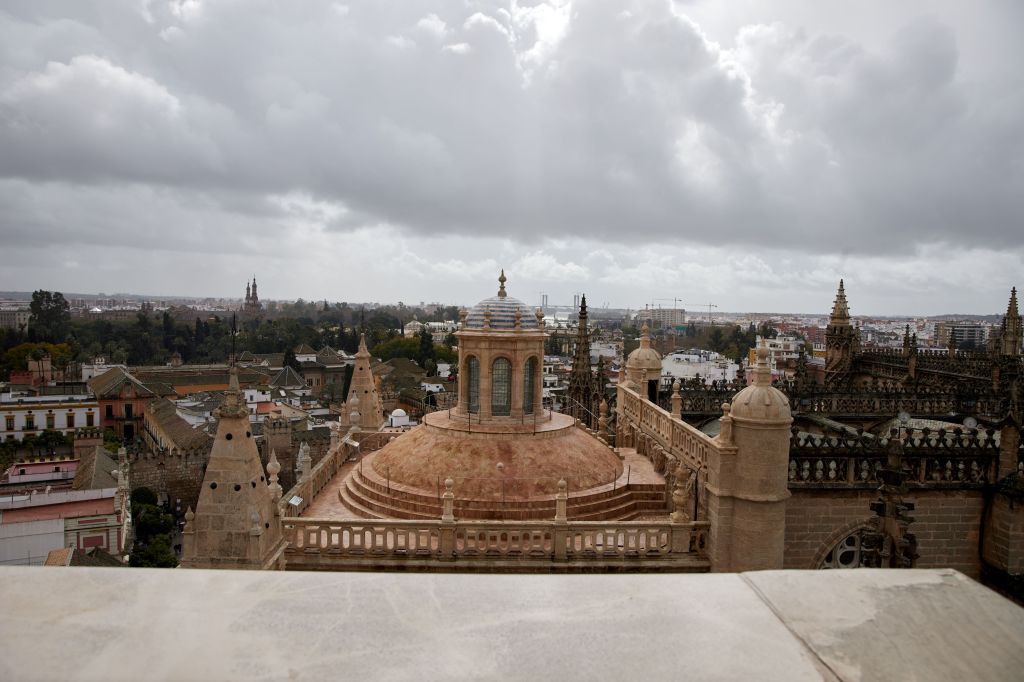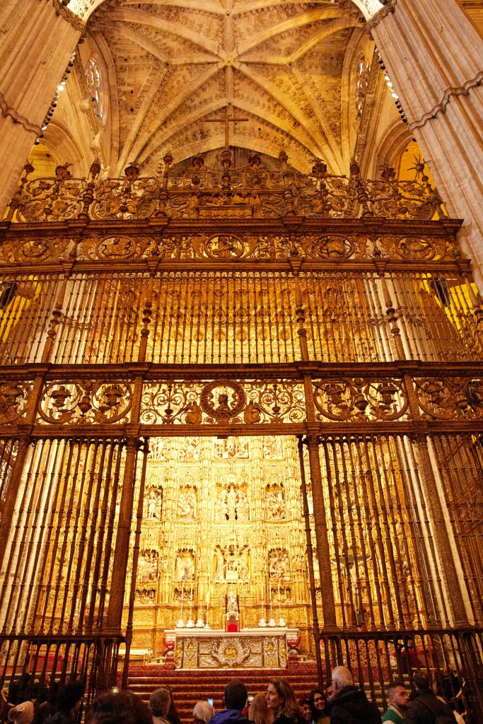 Катедралата на Севиля е най-голямата готическа и четвъртата по големина в света (без оглед на стил и време на построяването). Преди нея са само Св. Петър във Ватикана, катедралата в Апаресида, Бразилия (построена през втората половина на 20ти век) и Миланската катедрала. Строежът отнема целия 15ти век и е на мястото на съществуваща преди това джамия, което е било стандартна практика за времето. Сградата е правоъгълна, което не е точно по канон (катедралите обикновено са с форма на кръст). Катедралата е много богато орнаментирана и украсена. Градската легенда твърди, че, когато са започвали строежа, намерението на местните е било да „построим църква толкова красива и грандиозна, че тези, които я видят готова, да ни помислят за луди“. Имайки предвид, че строежът е завършен в самото начало на 16ти век, мисля, че са успели.