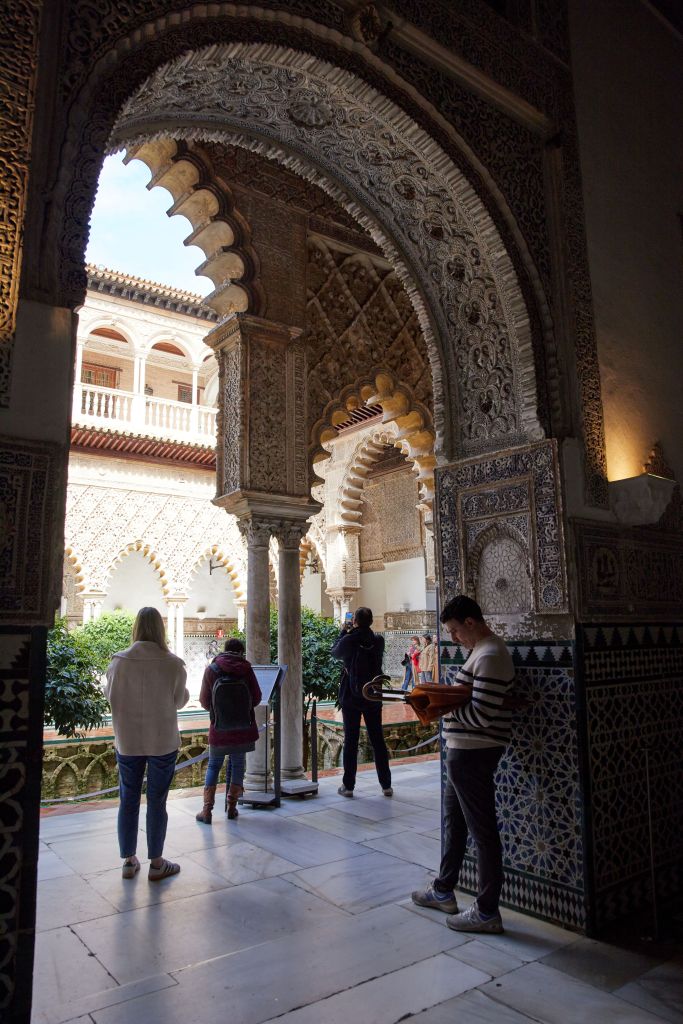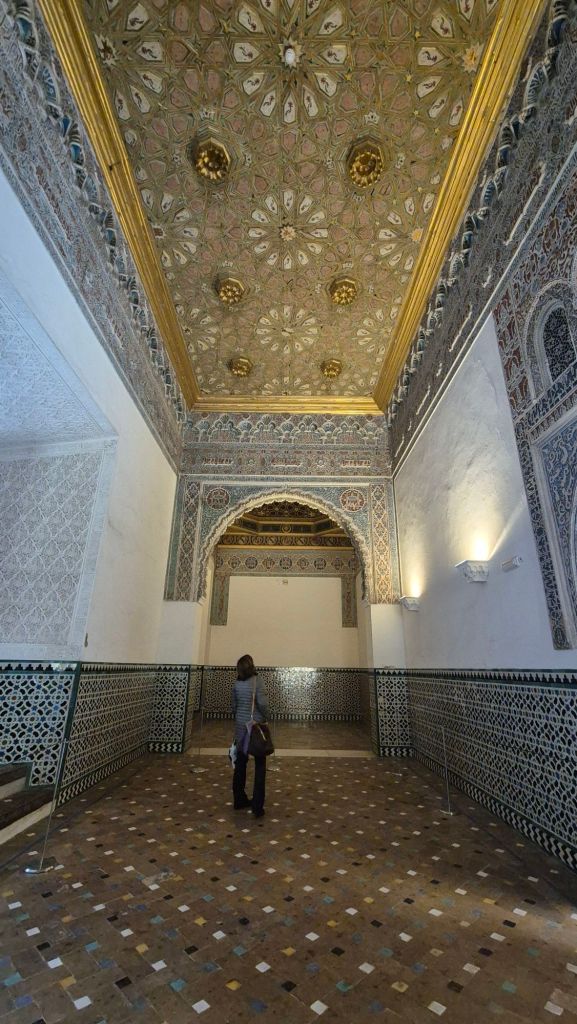 Алказар започва съществуването си в 10ти век като крепост на арабските владетели, след което прераства в дворец. След завземането на Андалусия от християните, дворецът е разширен и достроен в готически и ренесансов стил, но арабската част е запазена. Когато преди 3 години видяхме Алхамбра, останахме без думи. Сега мога да кажа, че Алказар е още по внушителен, но без романтичния ореол на Алхамбра.