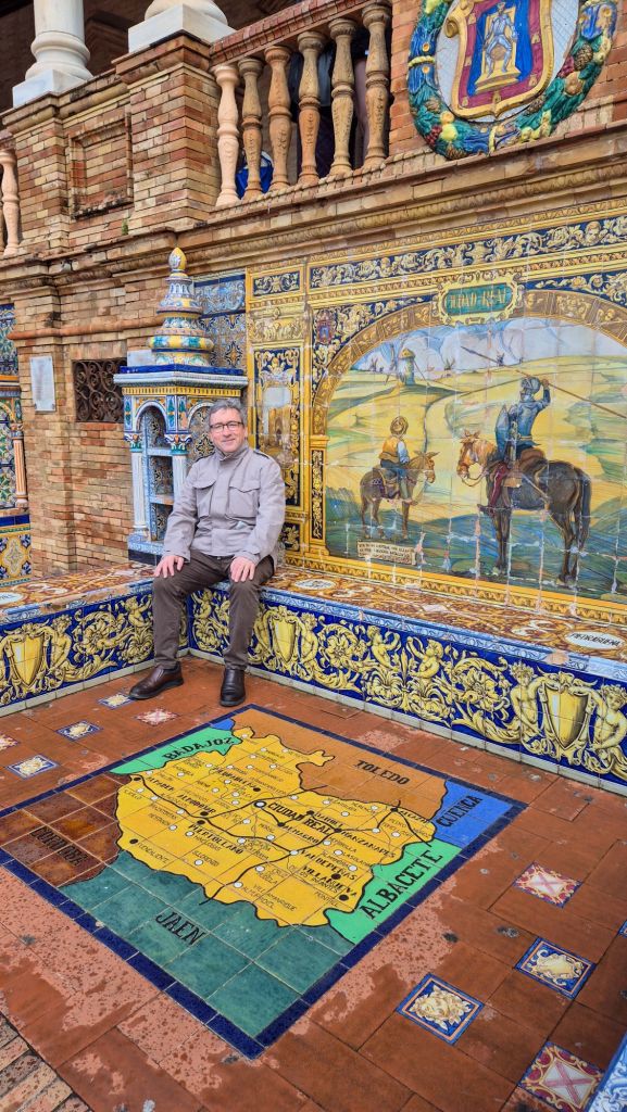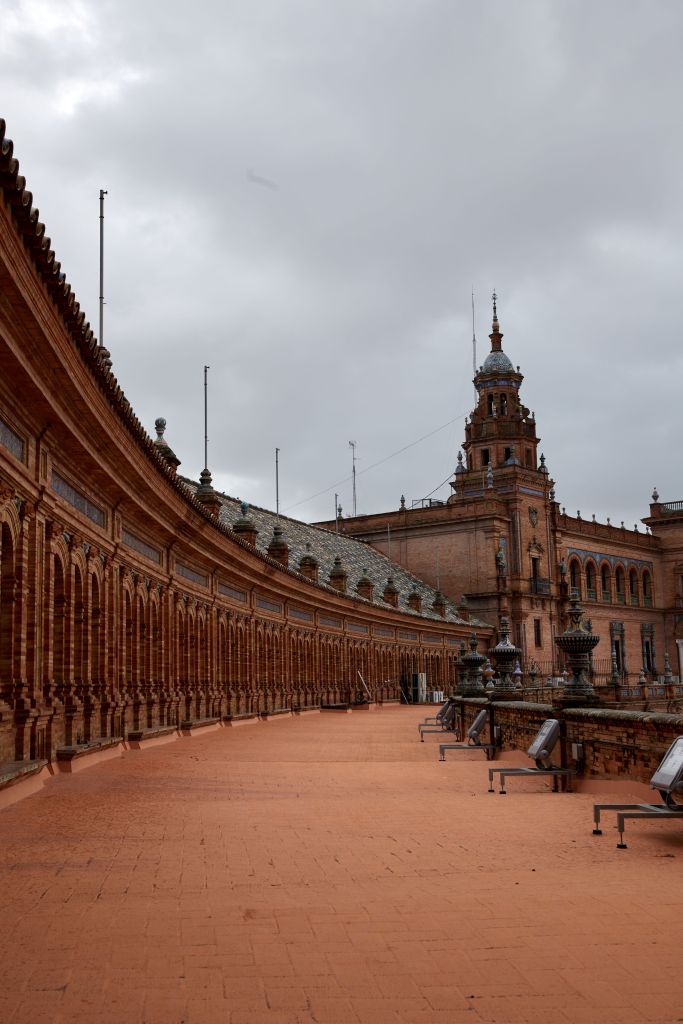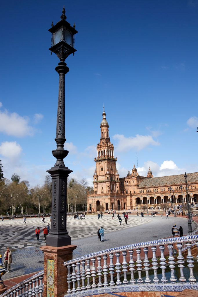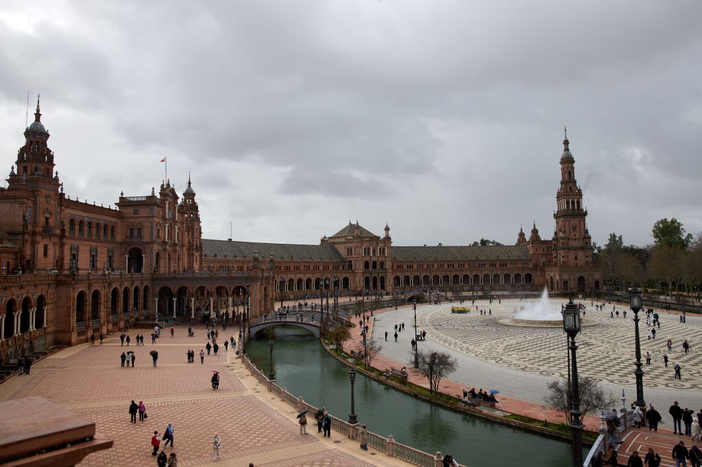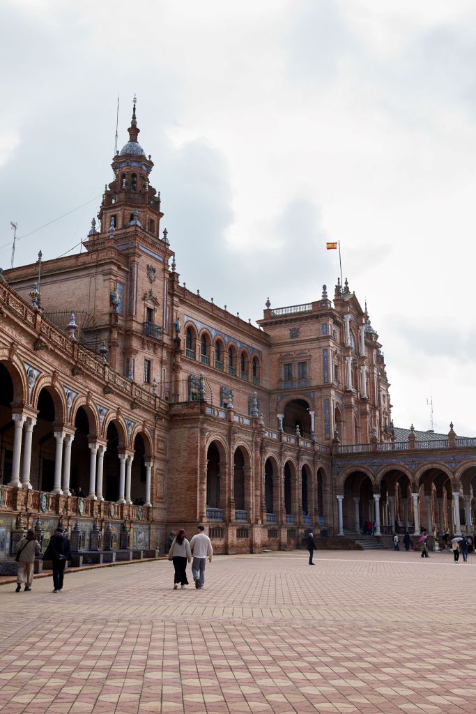 Площад Испания е третата голяма забележителност и достъпът е безплатен. Намира се до градините Мария Луиза, които не можахме да видим, заради лошото време. Площадът е построен през 1928 година за Иберо-Американското изложение и е много красив. Стилът е смесица от Ар Деко, испански ренесанс, барок и нео-мудехар, който акцентира върху арабските корени на града. Декориран е богато с фасадни файансови плочки.