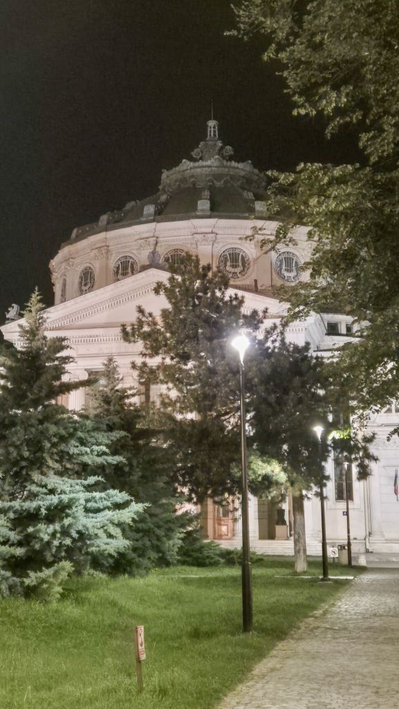 Имаше само едно място, където наистина искахме да влезем – концертната зала Атенеум. Гледахме сайта им и е наистина много красива. Извън концертната програма (нямаше представления по време на нашия престой), би трябвало да е достъпна за разглеждане срещу символичната входна такса от 15 леи (3 евро). Според публикуваната информация, на 2ри и 3ти май трябваше да е отворено от 9 до 18 часа. Но… не беше. Един не особено любезен служител, когото успяхме да открием, ни обясни, че няма значение какво е обявено, защото в последния момент се решавало дали ще пускат посетители. Ще остане за друг път, стига да успеем да влезем.