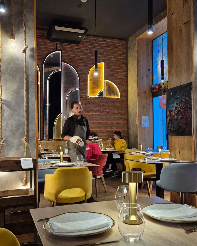 За обедите избрахме откровено туристически локации, което не означава, че храната беше лоша – напротив. Първото беше Hanul lui Manuc – историческа сграда, която е била страноприемница с капацитет близо 500 души. Порциите са огромни, десертите са за споделяне и цените са според мен малко високи, но, както казах, всичко беше вкусно. Намира се в рамките на Стария град.