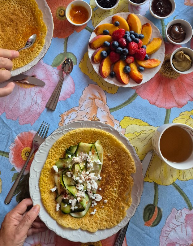 Обичам бавните мързеливи почивни дни, в които не бързаме за никъде. Излежаваме се и когато решим, че все пак е добре да станем, си правим закуска, различна от аламинутите, на които залагаме в работни дни. Тези палачинки сока (socca) приготвих вчера. За тях ви трябват само брашно от нахут, вода и мъничко зехтин. И по-възможност да не бързате, понеже е добре сместа да отлежи 20 – 30 минути. Правят се много лесно, стават тънки и еластични и не изсъхват прекалено бързо, така че да им се насладите с удоволствие.