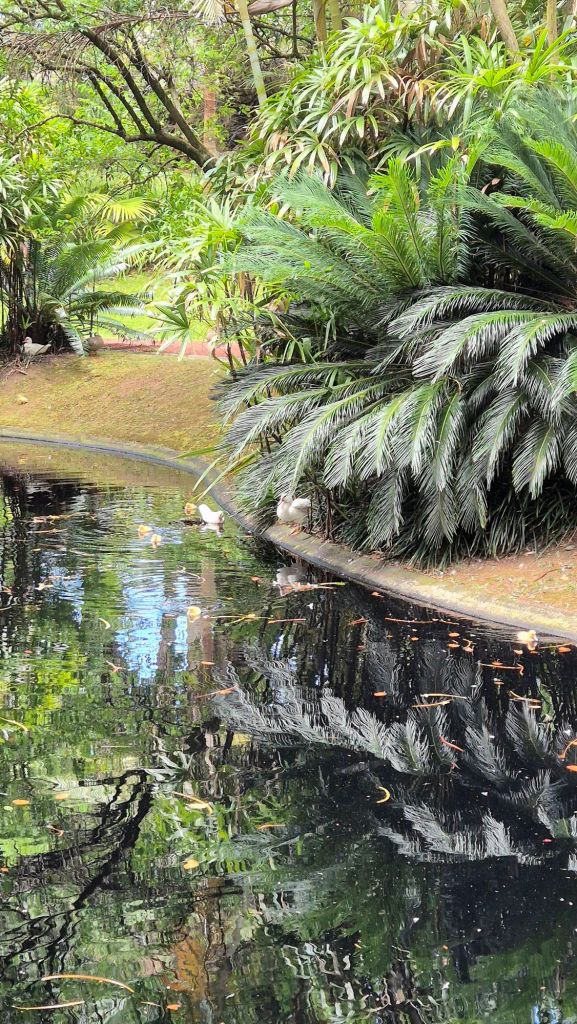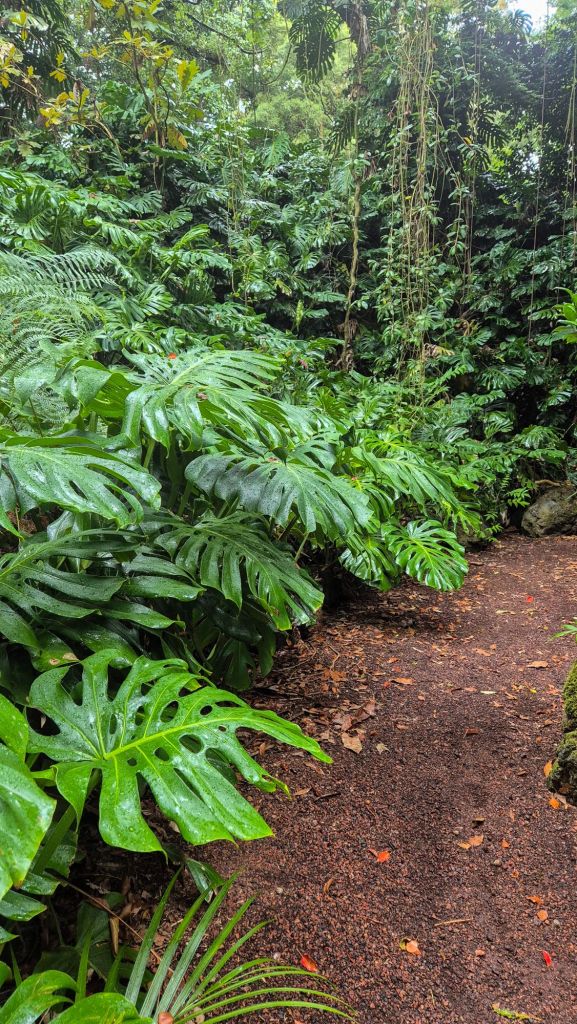 Другата градина в Понта Делгада, която посетихме още първия ден и където ни валя първият ни азорски дъжд е „Josе do Canto (Жозе до Канто)“. Входът е 5 евро. Тук ефектът е почти като потапяне в джунгла. Има малко „официални“ алеи и човек има усещането за дива природа. Единствената „подредена“ част е розариума, точно под хълма с къщата, в която е живял собственика. И тук имаше петли, кокошки и пиленца. Тази градина ни хареса повече.