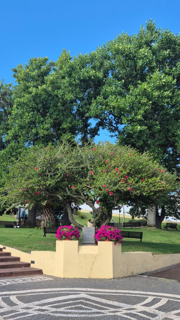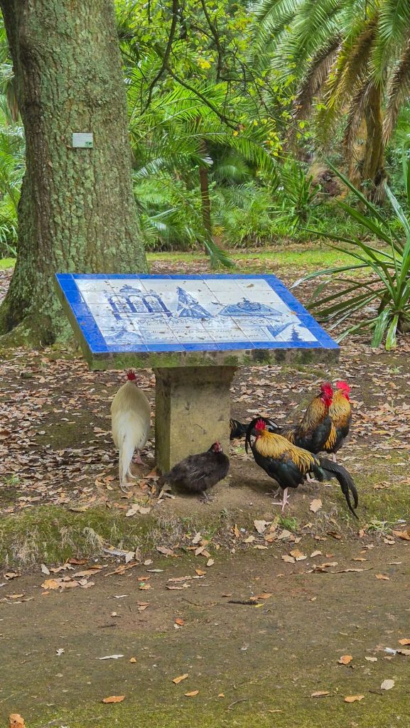 Ние посетихме три ботанически градини, две от които в Понта Делгада. Ще започна от тази, която най-малко ни впечатли – „Antonio Borges (Антонио Боржеш)“. Входът е свободен и мястото е приятно. Има добавени сгради, напомнящи крепости и няколко езера. Има и много петли, кокошки, пиленца, както и гъски, патици и патенца. Идеално е за пикник.