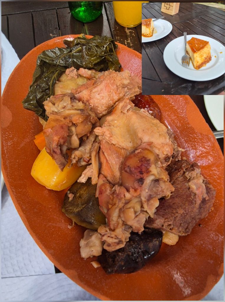 5. Grena park, Fumarolas – cozido (готвено) от пилешко, говеждо, свинско, наденици и зеленчуци, приготвени бавно на пара от вулканичната вода. Яйчен пудинг приготвен по същия начиhн. Избрахме го, защото е нещо типично за региона. Иначе никога не съм се изкушавала да опитам cozido, което и в Португалия е горе-долу същото. Това беше изненадващо вкусно.