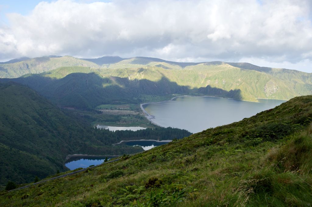 Езерото Фого видяхме само отвисоко. Идеята беше да го оставим за следващия ден, но нещата се случиха по различен начин. Искахме да се качим до Miradouro (място с гледка) da Barrosa (Бароза), което е едно от най-високите места на острова. Оказа се че пътят до там е затворен за частни автомобили между 7 и 19 часа, но има автобус (5 евро), който спира на три места с гледка – Bela Vista (Бела Вишта), Бароза и Фого. Така видяхме и езерото по-добре, отколкото ако бяхме отишли до него с кола. Ограничанието за лични автомобили може да се обясни както с желанието на местните власти да добавят приходи към бюджета си, така и с факта че паркингите на местата с гледка са малки и пътят е тесен и по-голям брой коли биха създали логистичен проблем.