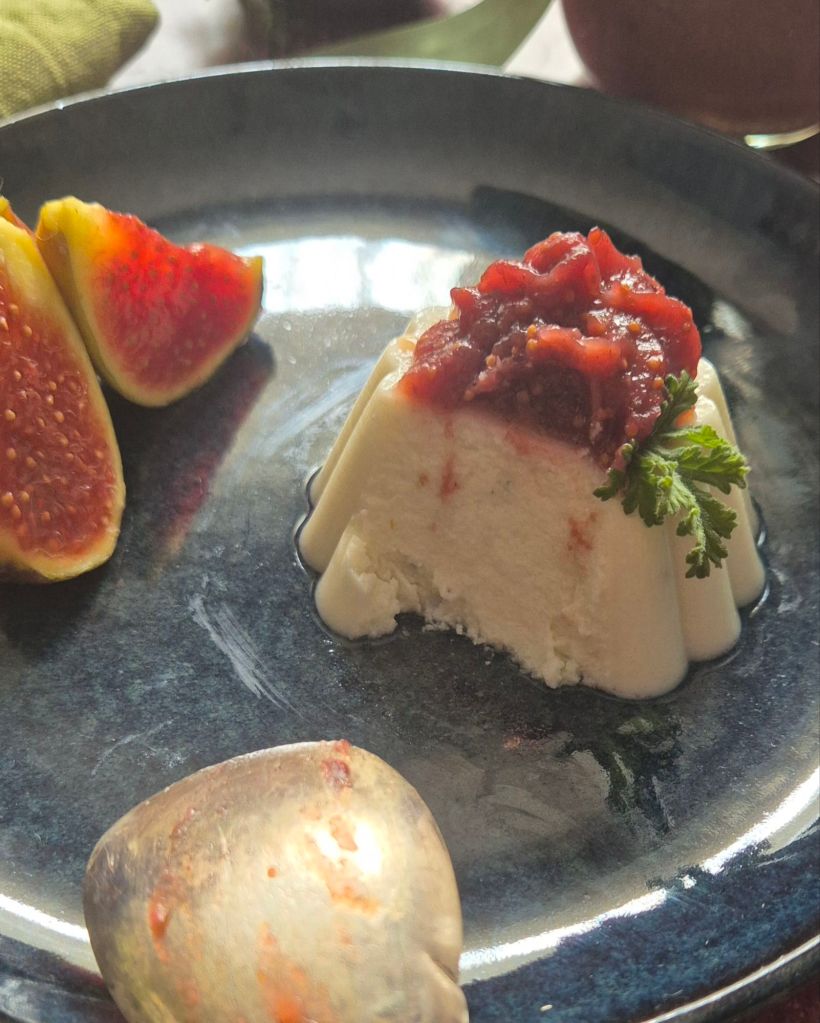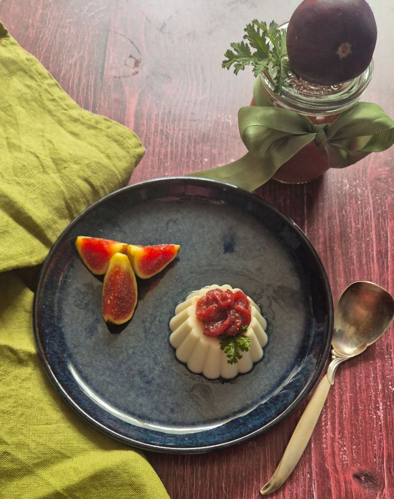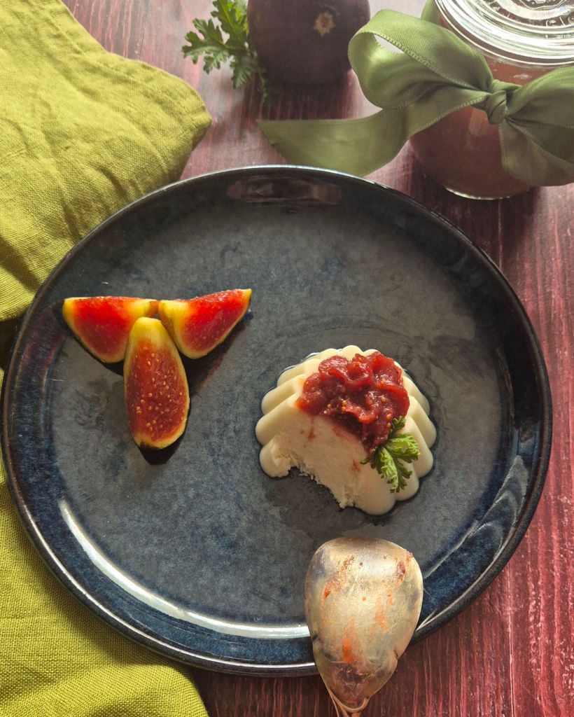 Аз го добавих към една високопротеинова панакота с кварк и горгонзола, която е чудесен контрапункт на сладостта на смокините. Направих я със сметана и кварк, подсладих леко с еритритол и желирах с агар-агар.