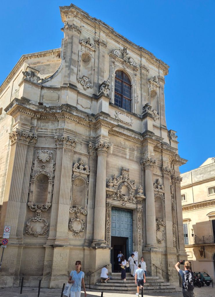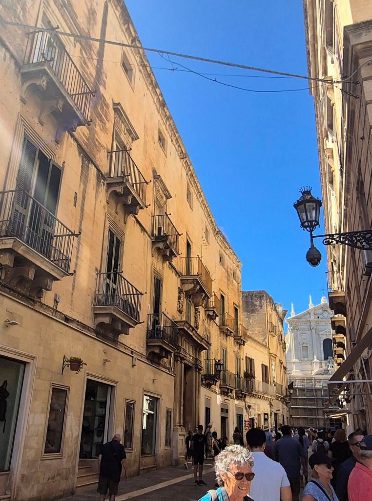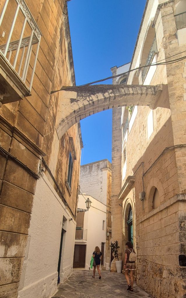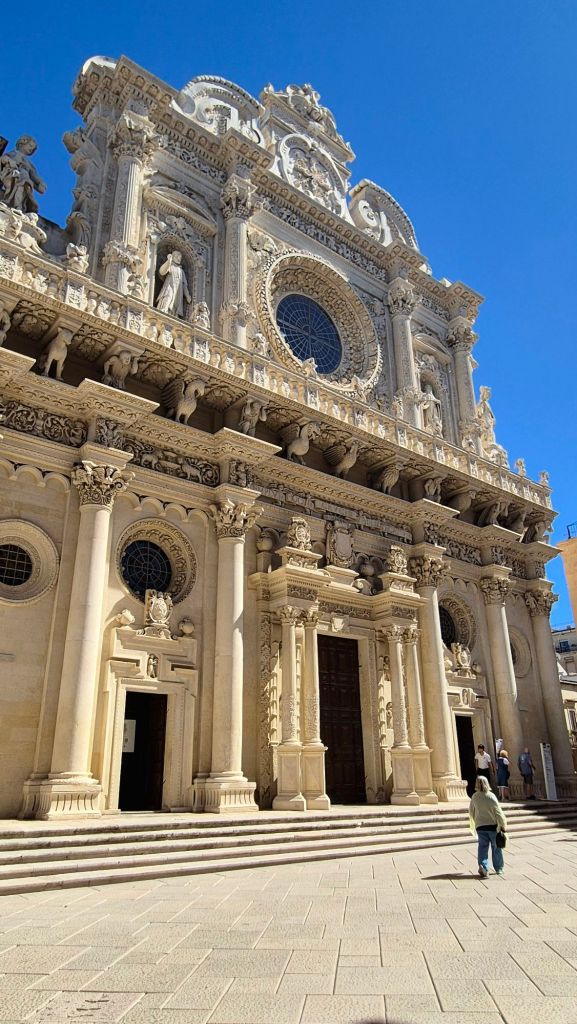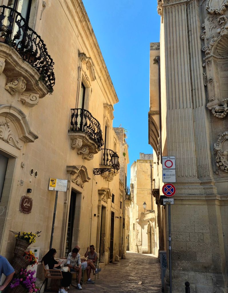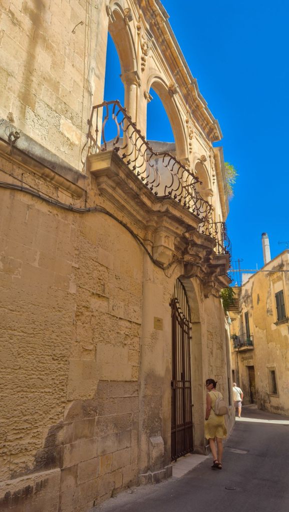 Започвам от Лече, понеже то беше първата ни дестинация. За него се смята, че е бароковата перла на италианския юг. Повечето сгради са в този характерен за много места в Италия топъл цвят между жълто и охра. Ние започнахме с cafe leccesse (кафе, което се сервира с лед и кондензирано бадемово мляко) и pasticcioto leccesse (типичен за Пулия десерт от хрупкаво маслено тесто с пълнеж, който може да варира, но този конкретно е от сладкарски крем), след което се разходихме по живописните тесни улички на стария град.